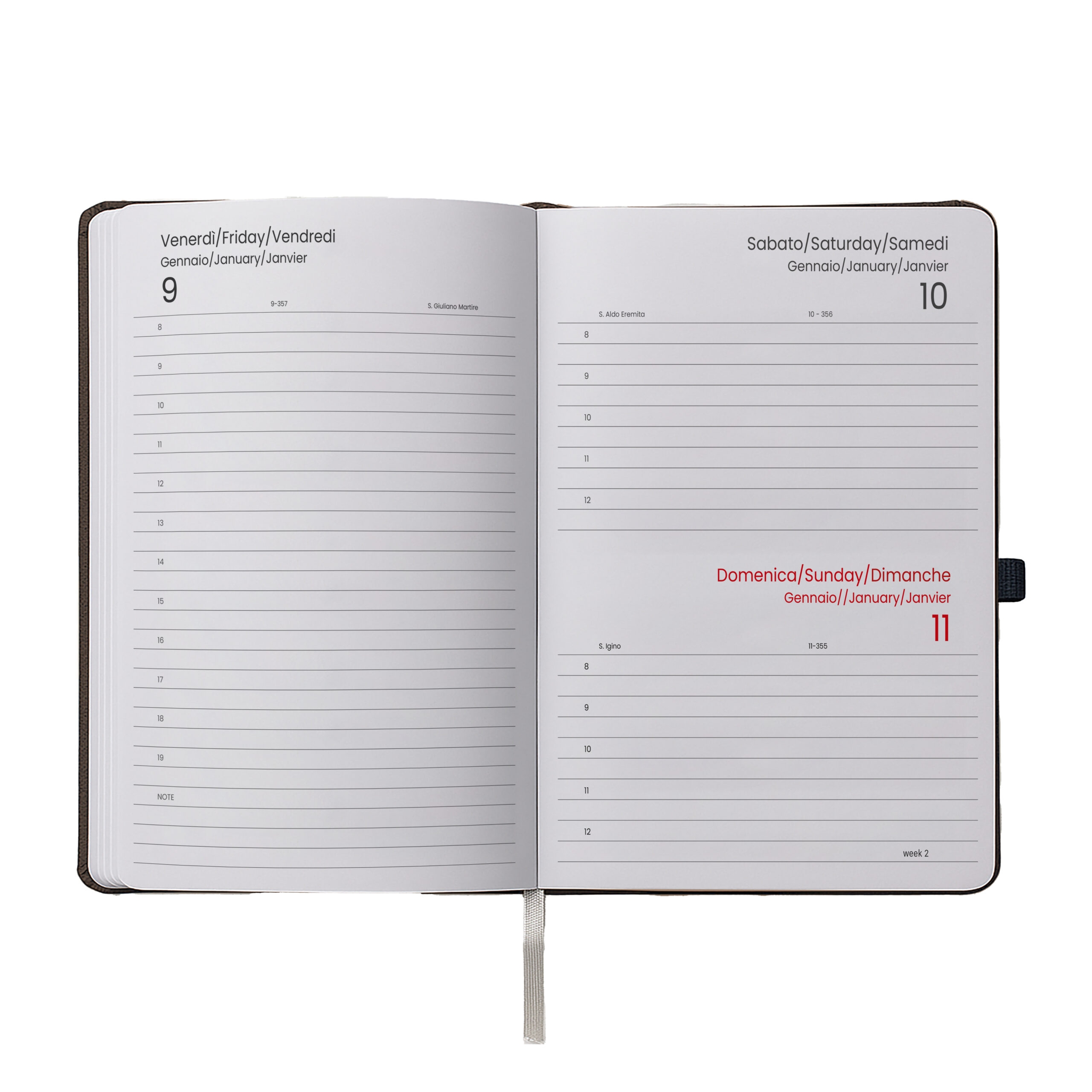 Agenda giornaliera 2026, copertina rigida in PU termovirante con impuntura perimetrale