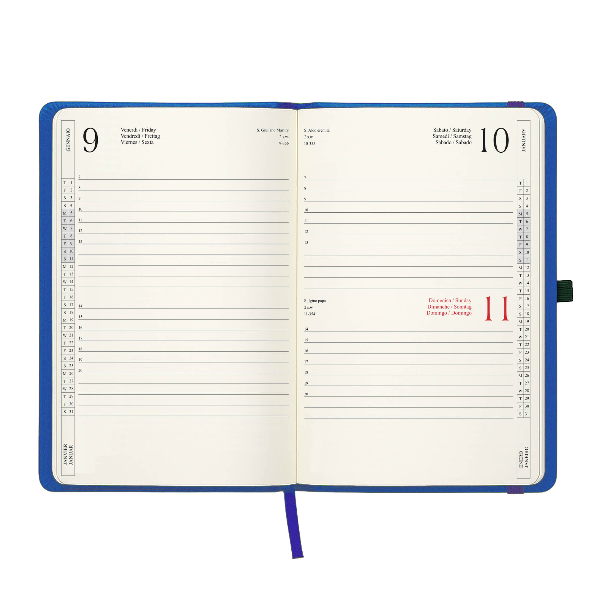 Agenda giornaliera 2026, copertina rigida in PU termovirante con impuntura perimetrale. Con elastico per la chiusura e anello porta penna. 12 mesi. 176 pagine in carta da 70 g/m2 e stampa a due colori. La copertina è personalizzabile. Scatola opzionale 25796
