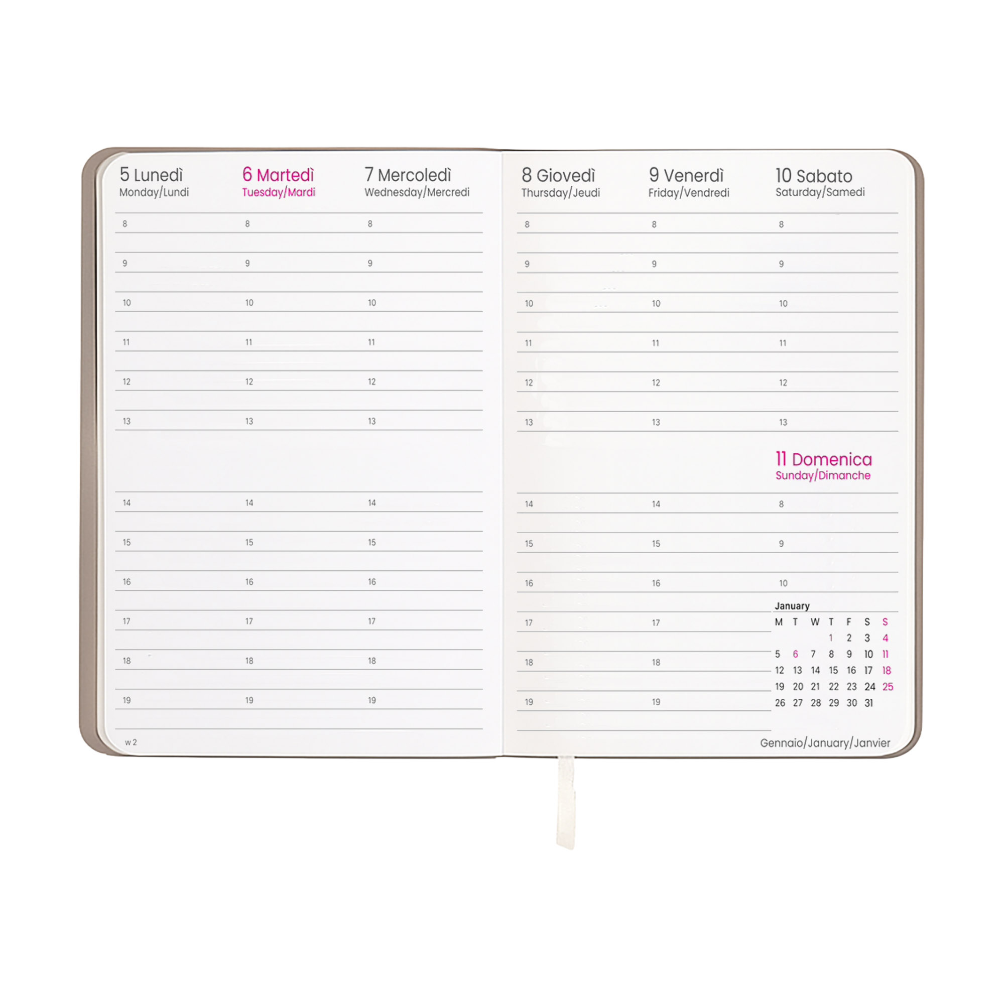 Agenda settimanale 2026 con copertina flessibile in PU termovirante