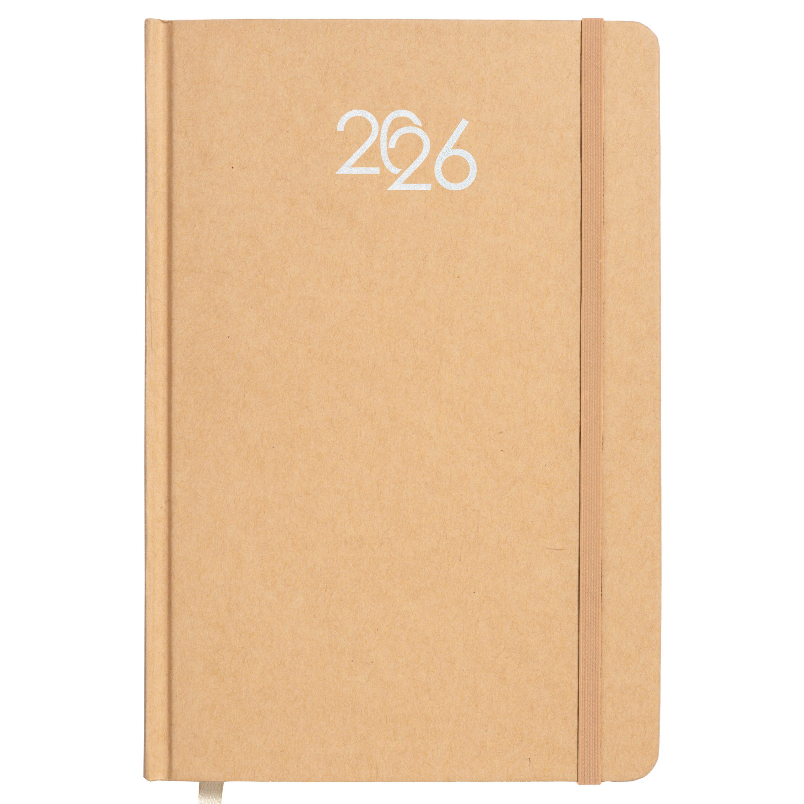 Agenda settimanale 2026 con copertina rigida in cartoncino. Con elastico per la chiusura. 12 mesi. 64 pagine in carta bianca da 70 g/m2. Copertina personalizzabile. Scatola su richiesta 23797