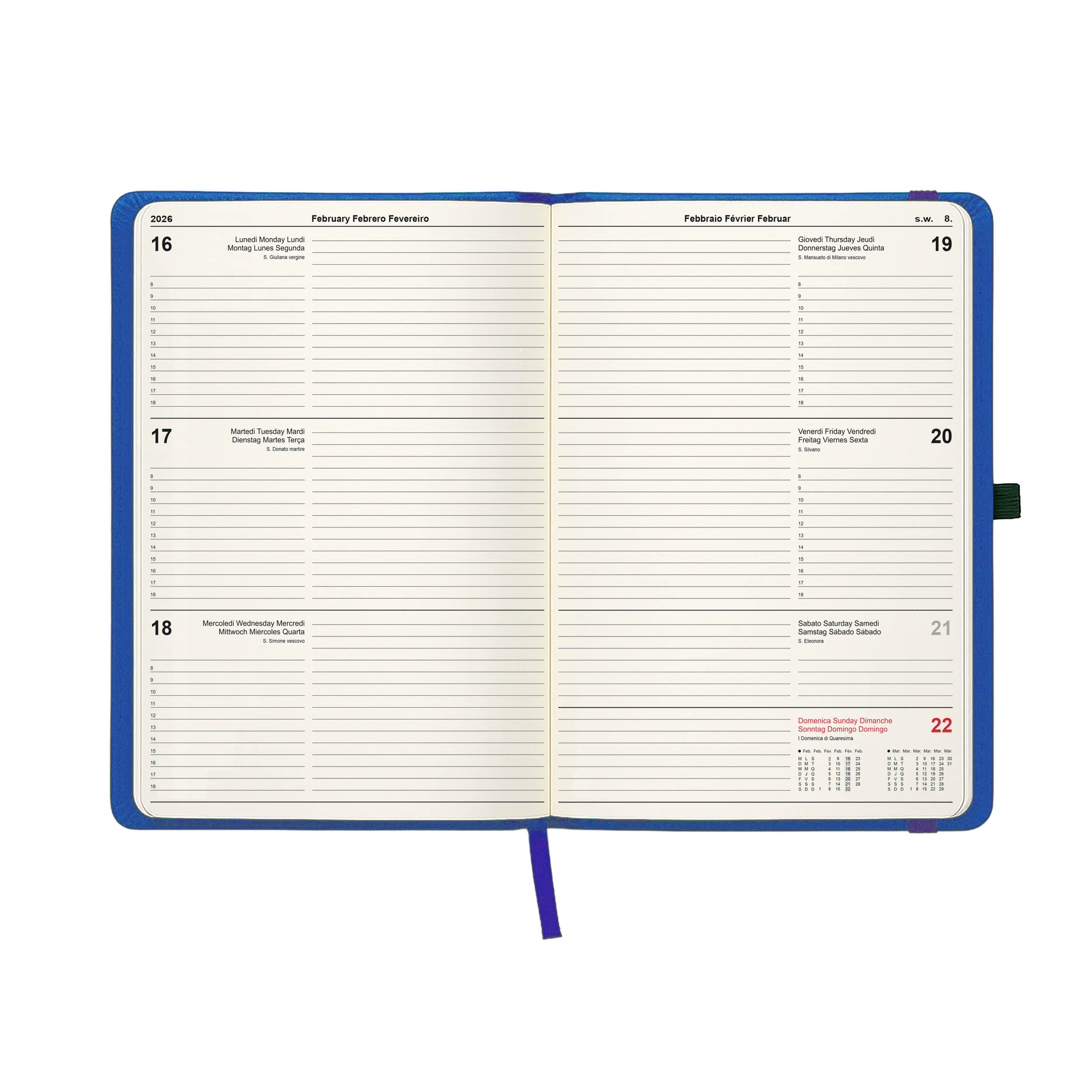 Agenda settimanale 2026, copertina rigida in PU termovirante con impuntura perimetrale