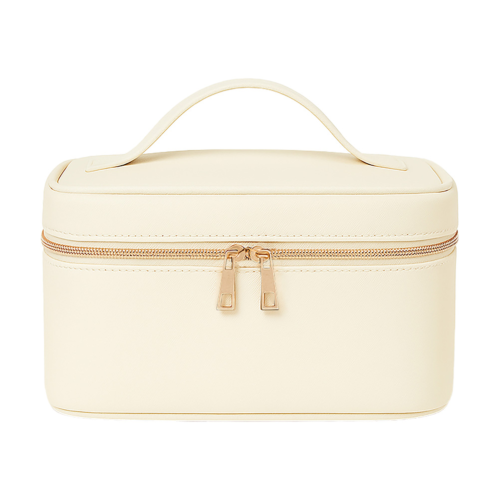 Beauty case grande in PU grana fine saffiano color pastello con chiusura a zip, maniglia e tasche interne