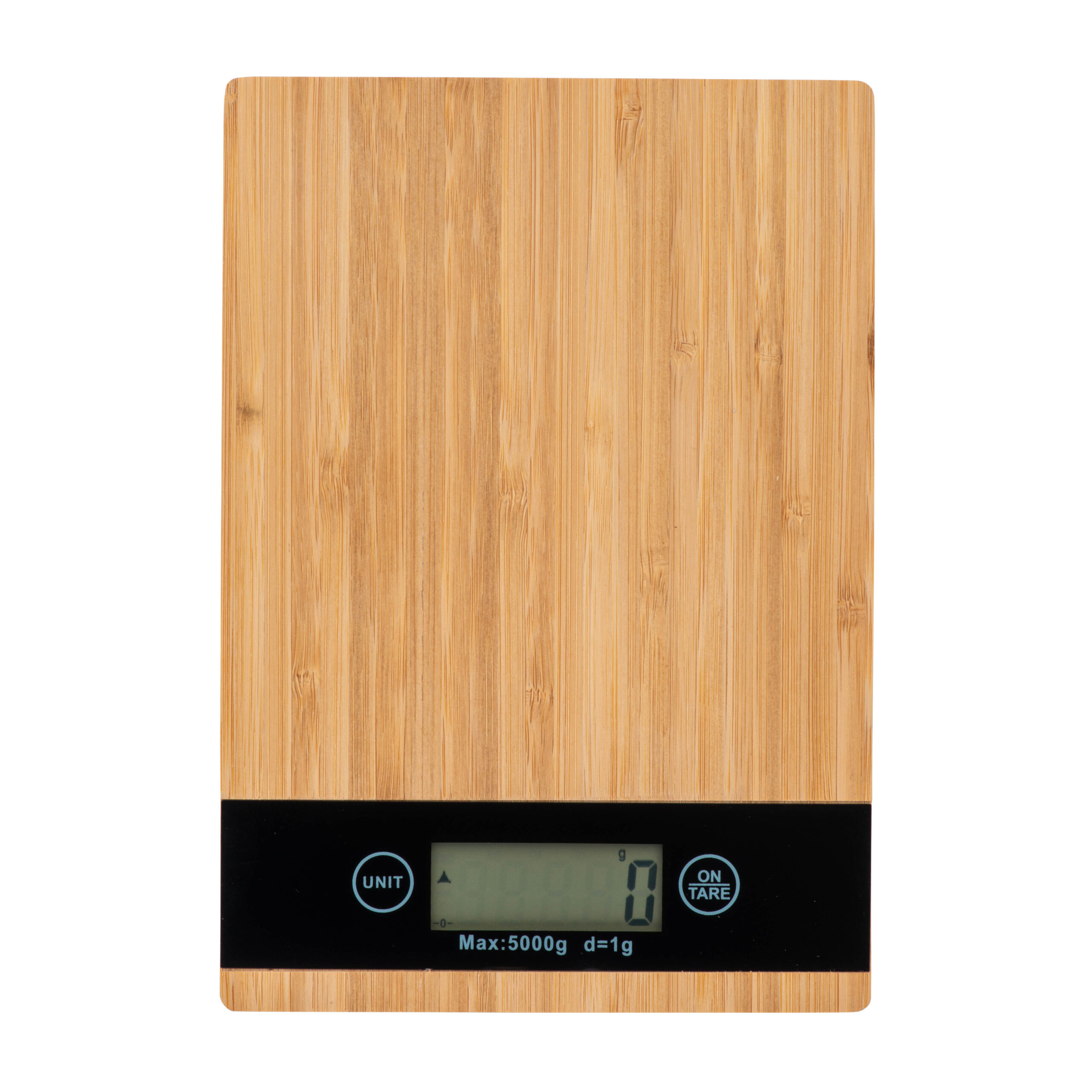Bilancia da cucina digitale in bambù, portata massima di 5 kg (2 batterie AAA non incluse)