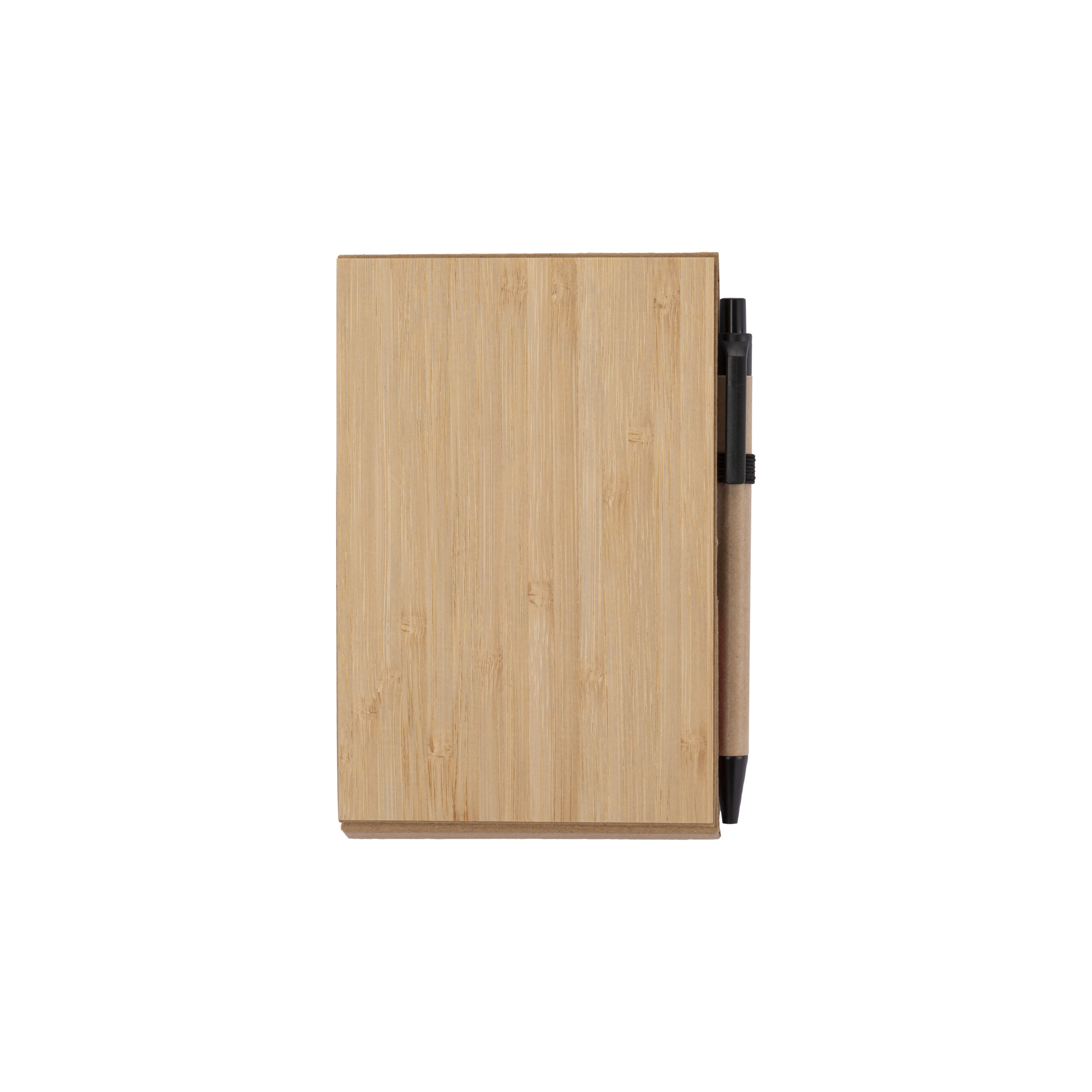 Blocco note da 70 fogli con copertina in bambù, foglietti adesivi per note, penna a sfera e supporto per telefono