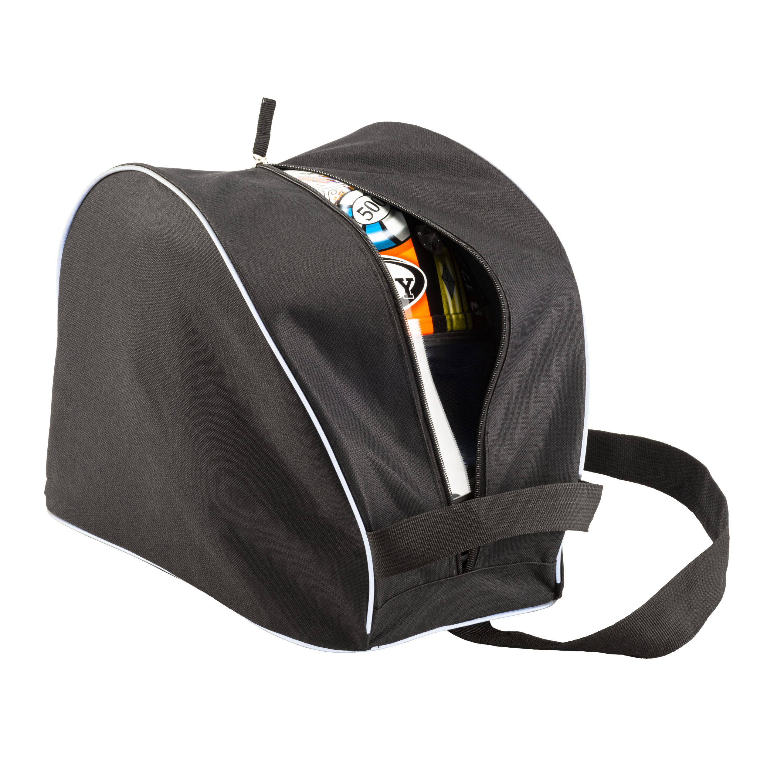 Borsa porta casco in poliestere 600d con tracolla, profilo catarifrangente e tasca porta guanti