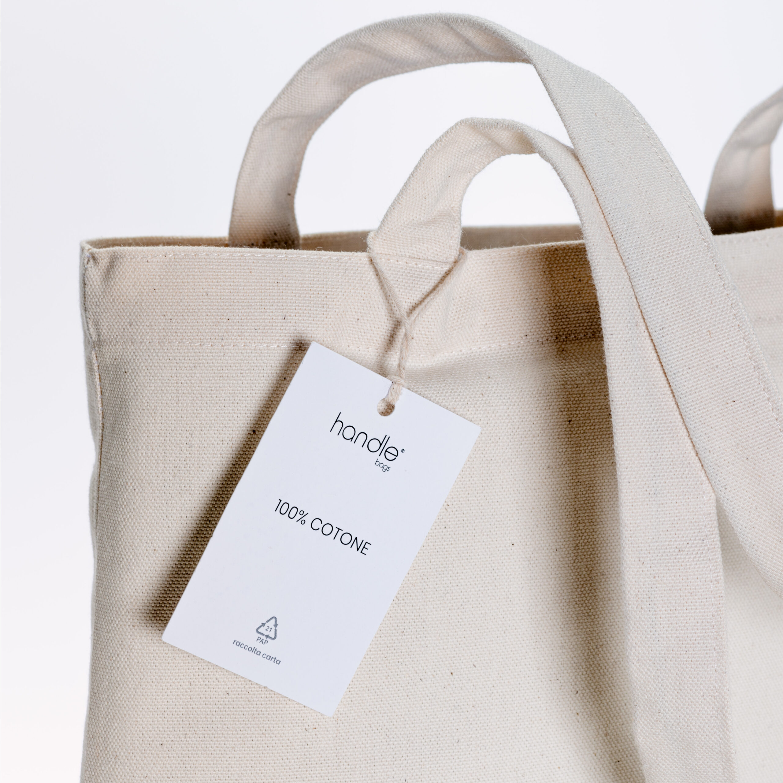 Borsa shopper made in Italy in cotone da 240 g/m². Dotata di manici lunghi per un comodo trasporto a mano e a spalla.