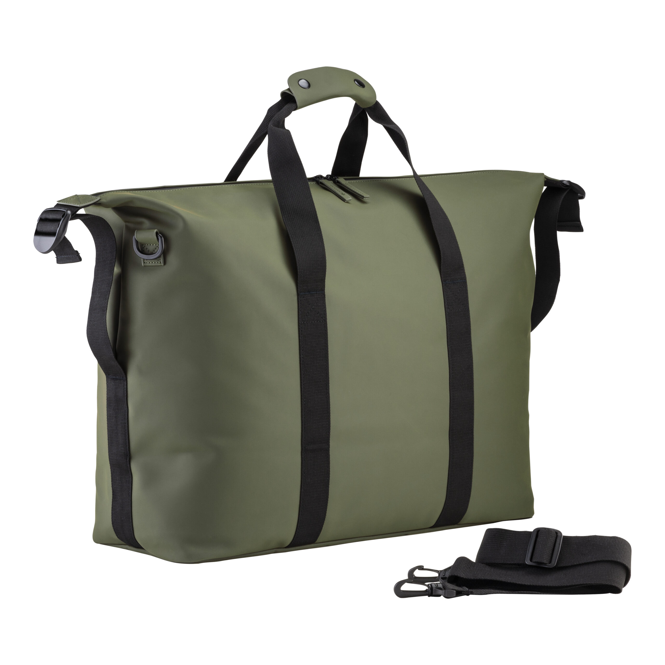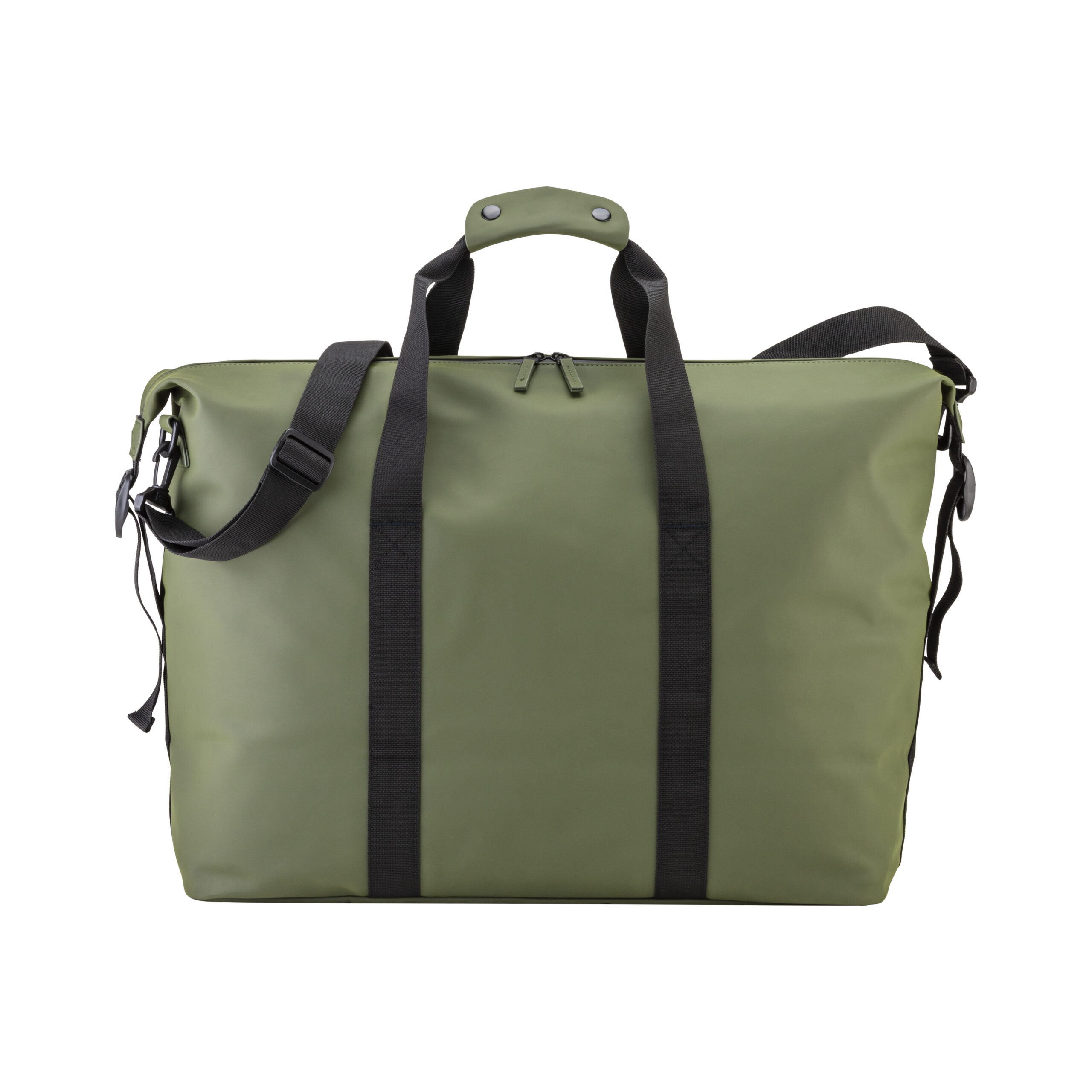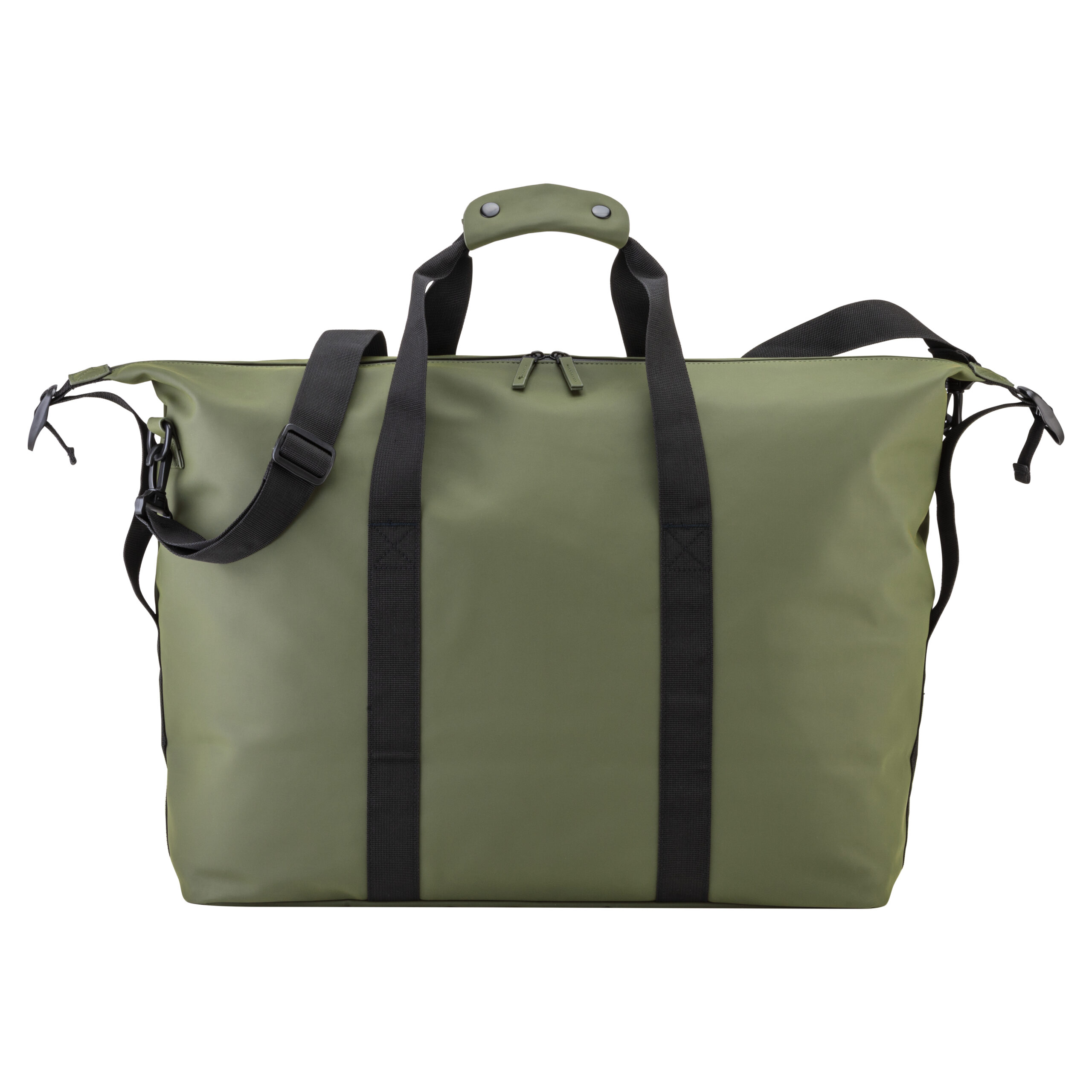 Borsone da viaggio in soft PU water resistant. Ampio scomparto principale con cerniera waterproof. Tasca interna con zip. Tracolla regolabile e removibile con fibbia in metallo
