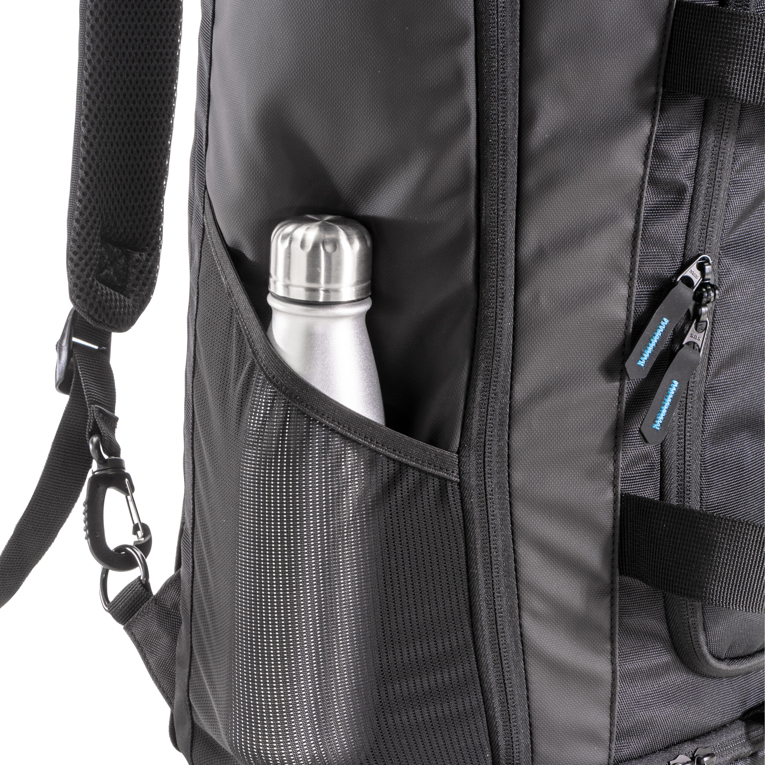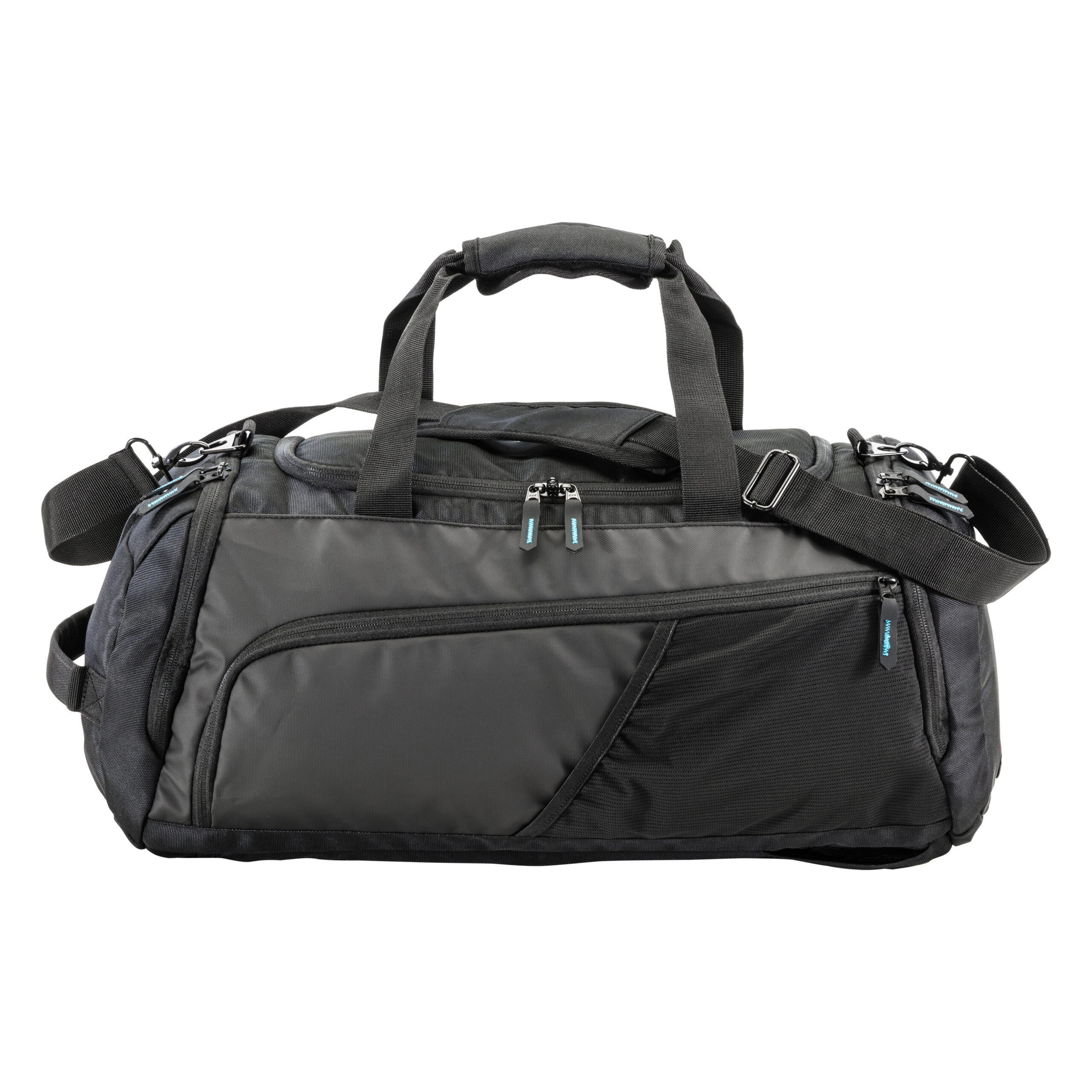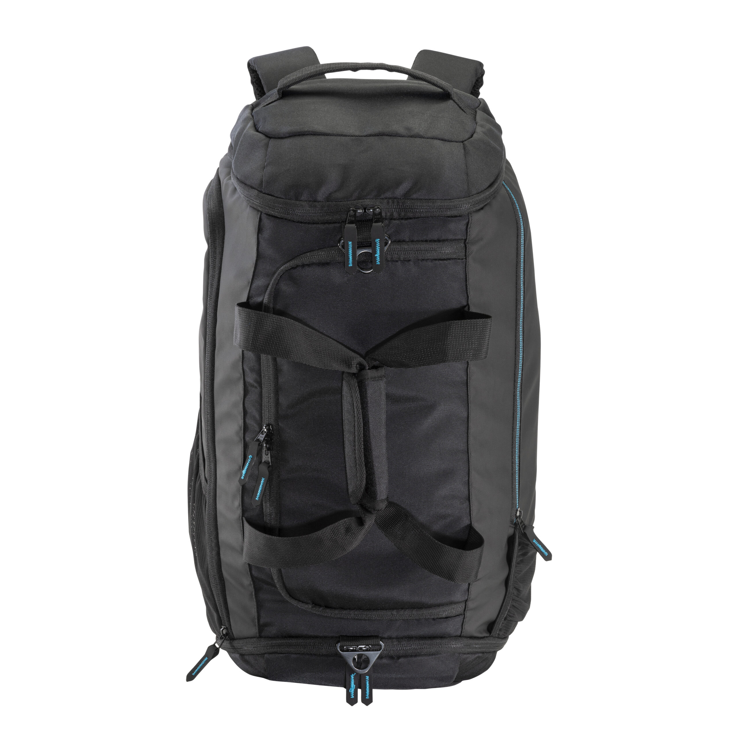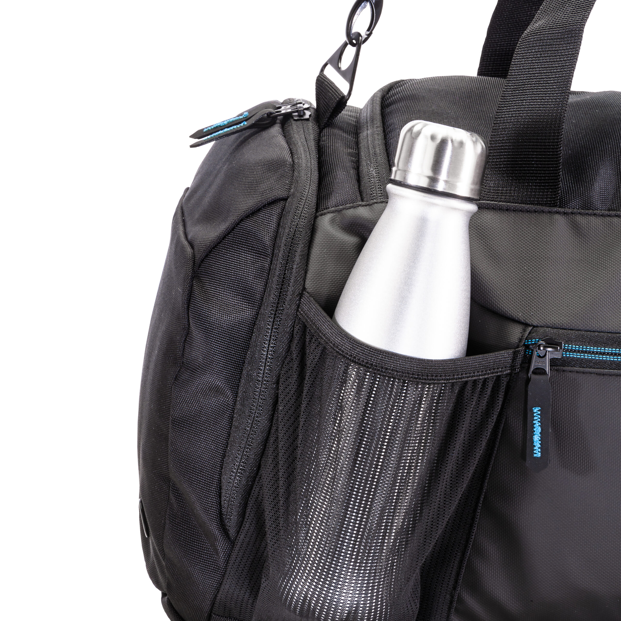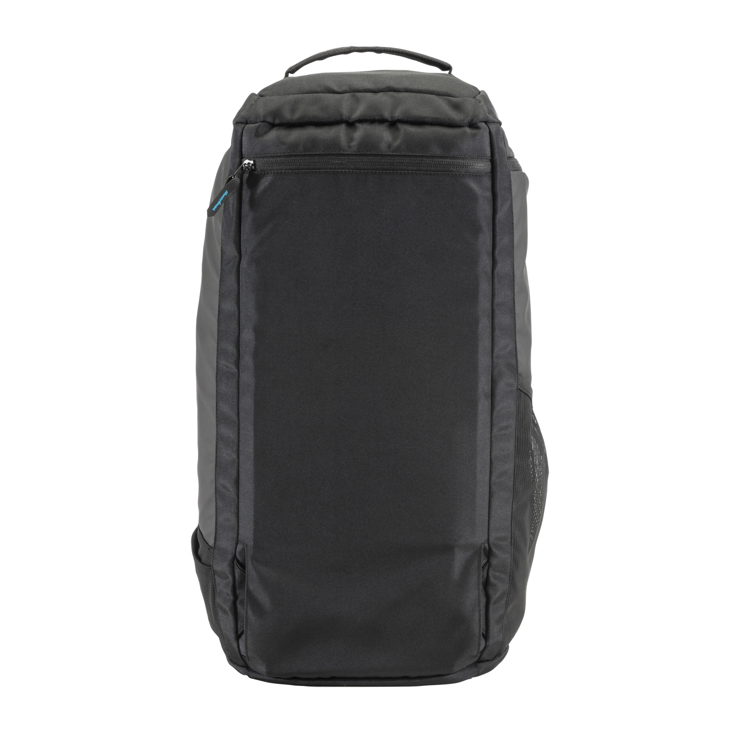 Borsone/zaino in poliestere riciclato (R-PET) . Ampio scomparto con apertura con cerniera, uno scomparto porta scarpe, una tasca laterale con cerniera, tasca laterale porta bottiglia in rete. Spallacci imbottiti regolabili.