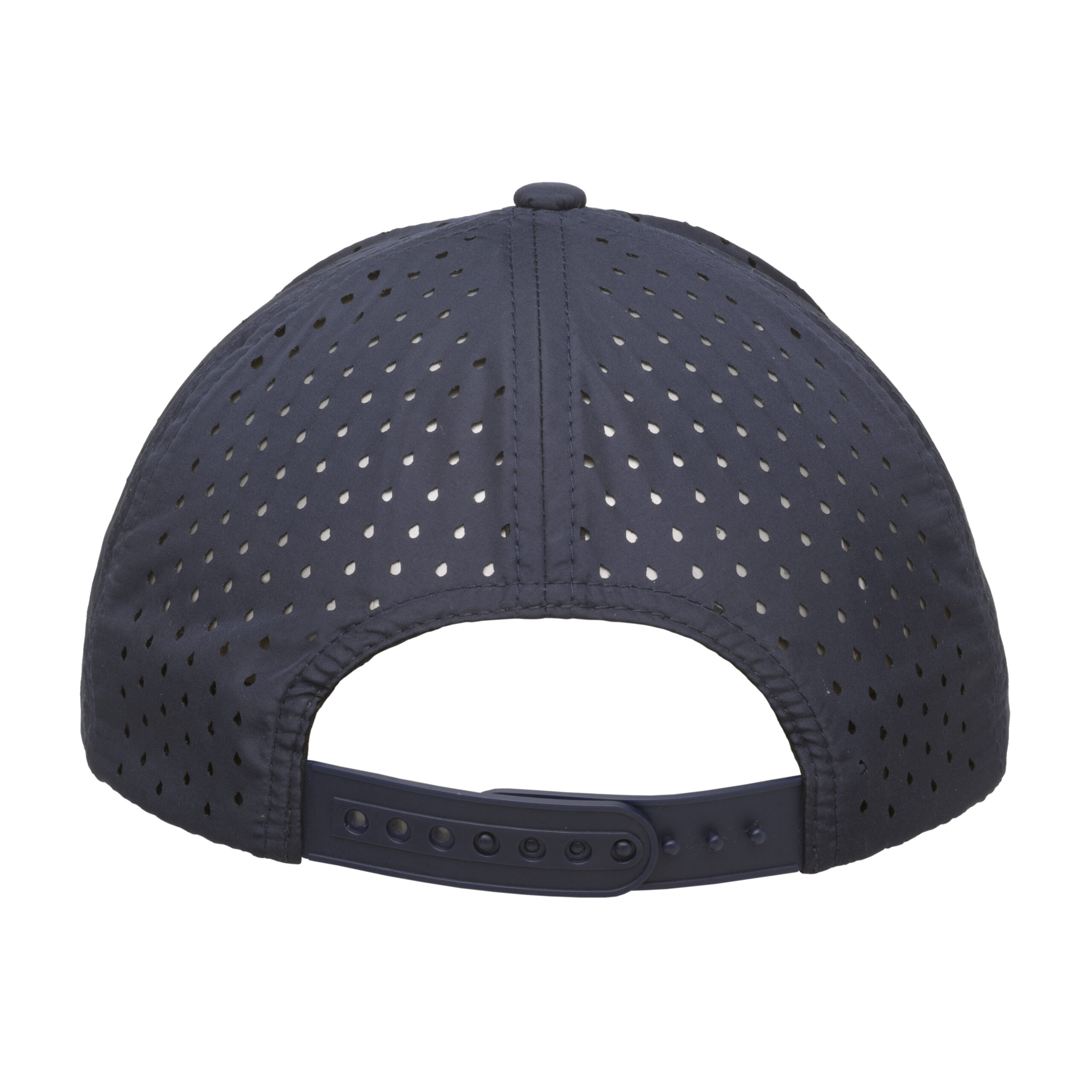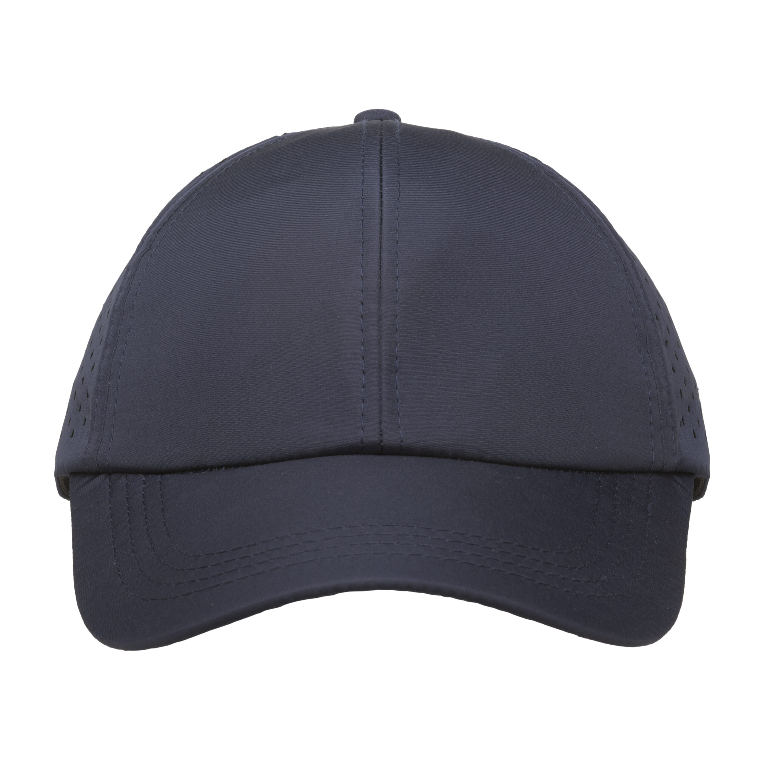 Cappellino da baseball in poliestere composito, 6 pannelli. Calotta forellata. Chiusura regolabile con clip in plastica