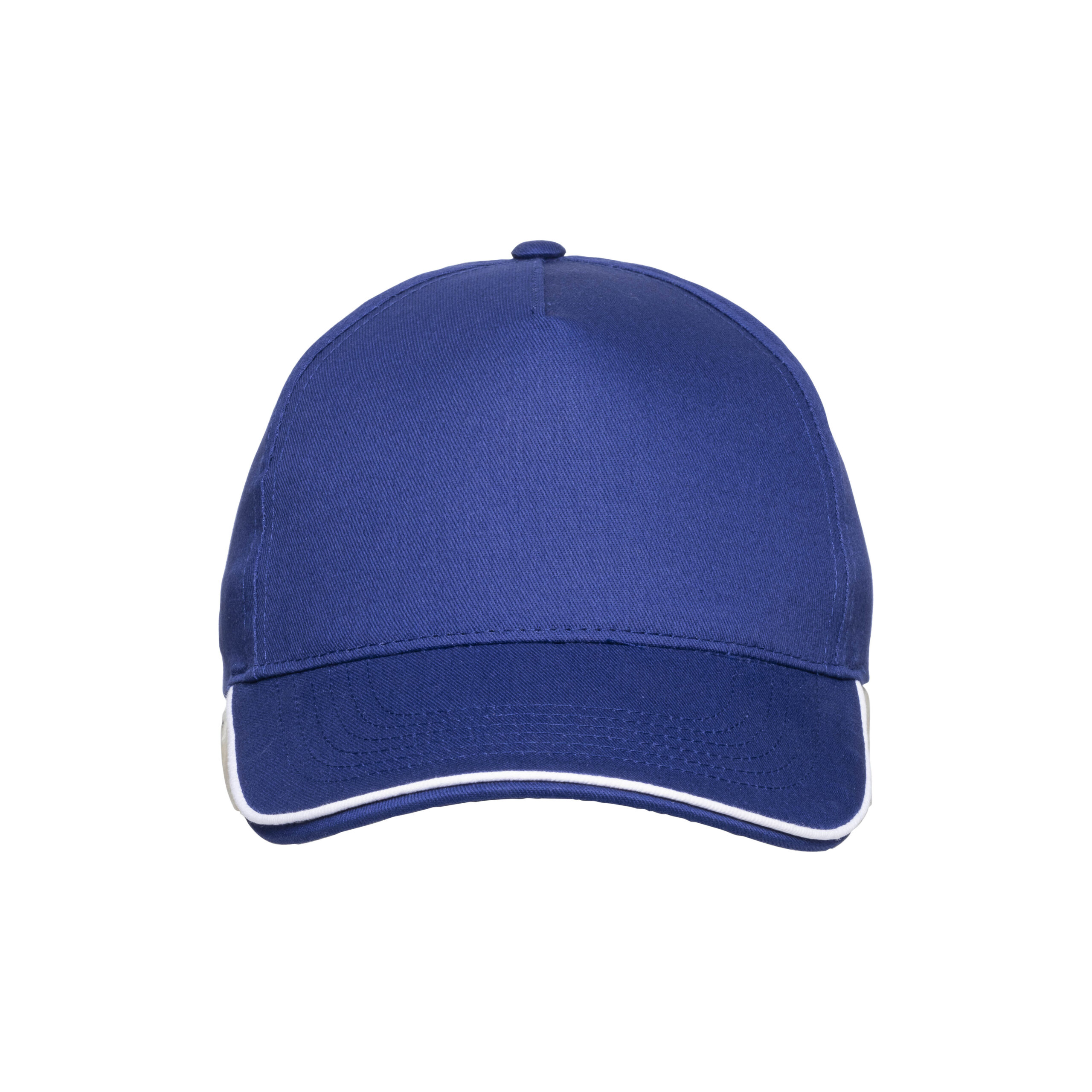 Cappellino in cotone 5 pannelli, visiera sandwich in contrasto con chiusura con velcro