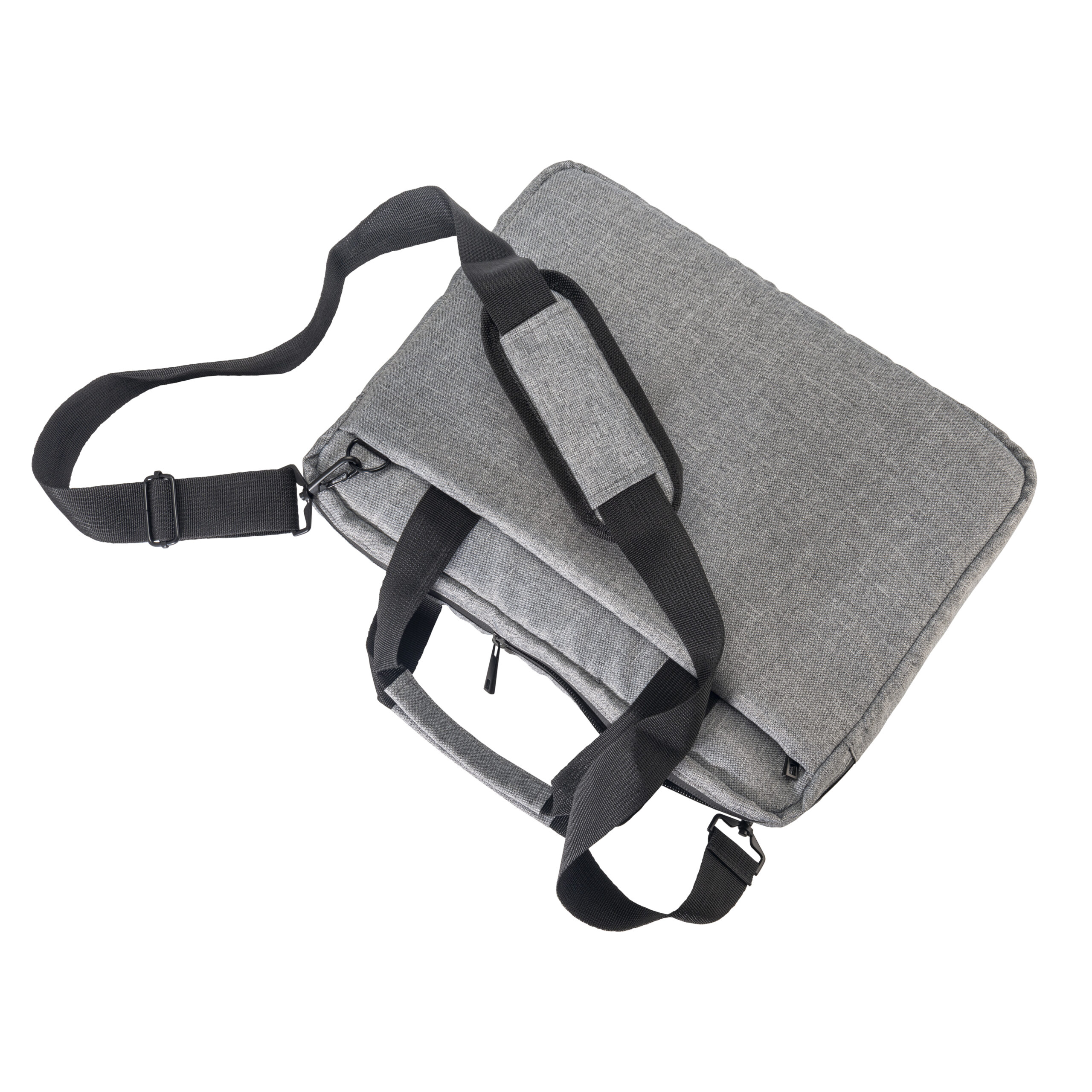 Cartella porta computer da 14″ in r-pet, tasca anteriore, tracolla regolabile, cinghia posteriore per fissaggio al trolley