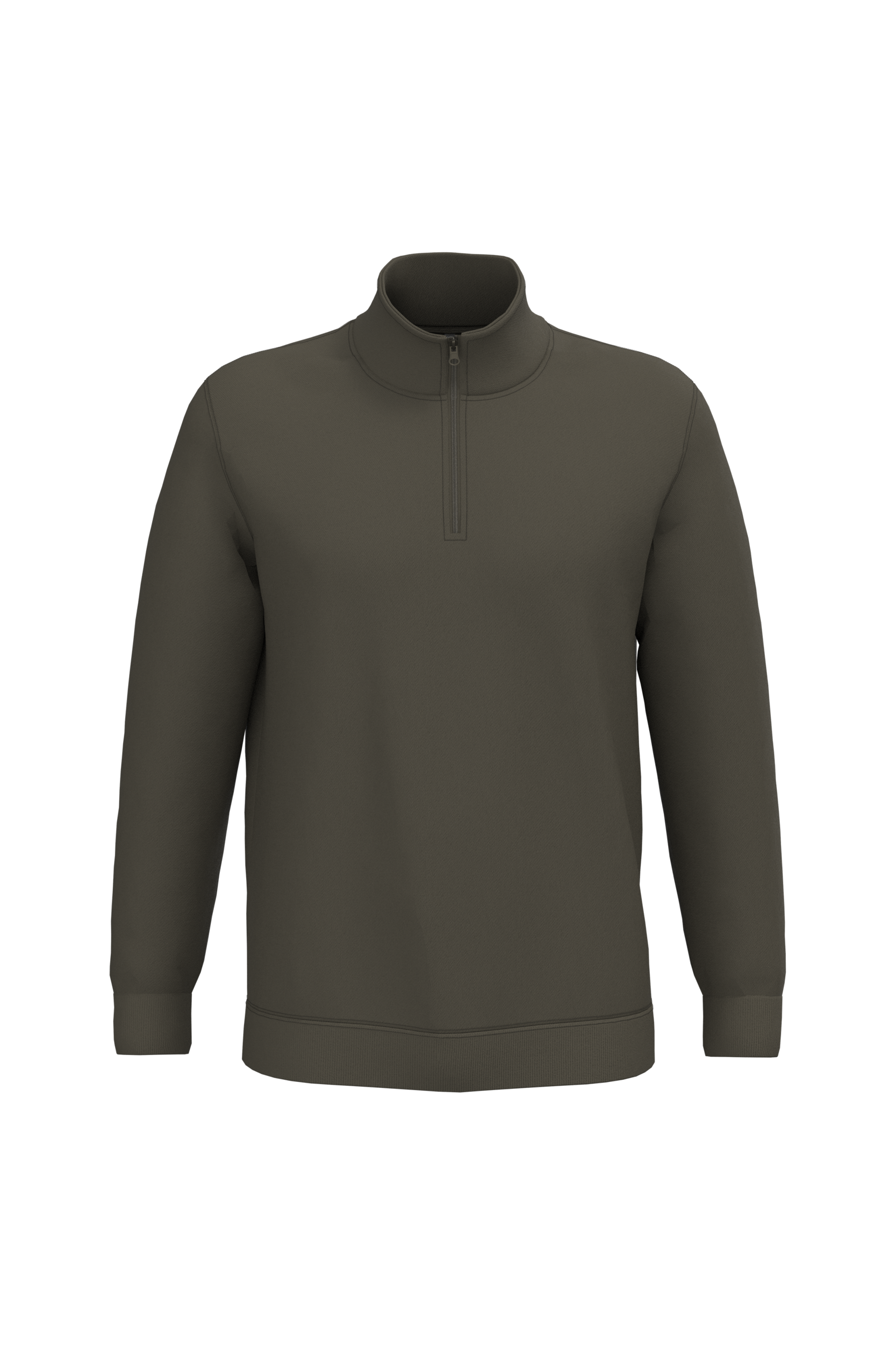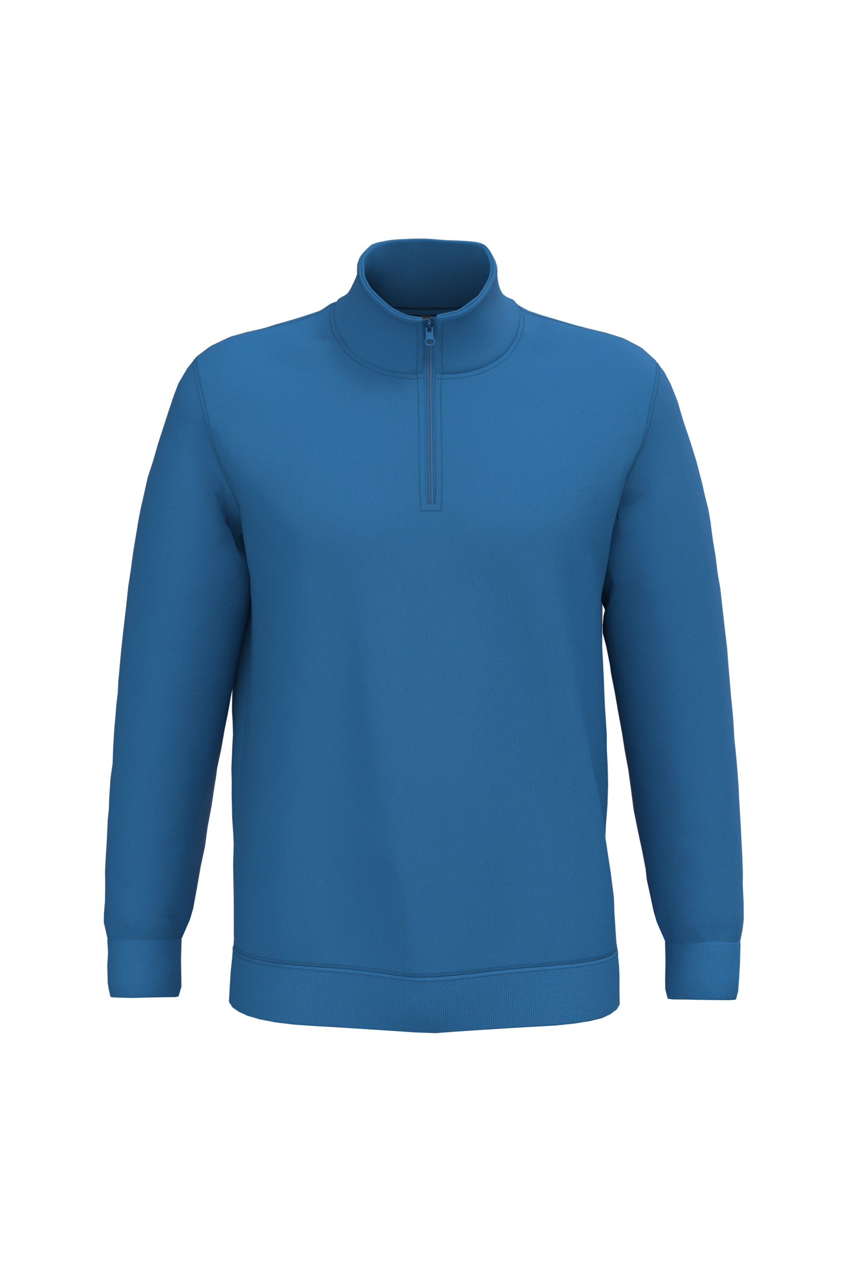 Stile moderno e polivalente, Maniche a giro. Collo con zip con nastrino di rinforzo. Fondo manica e fondo capo a costine tono su tono.