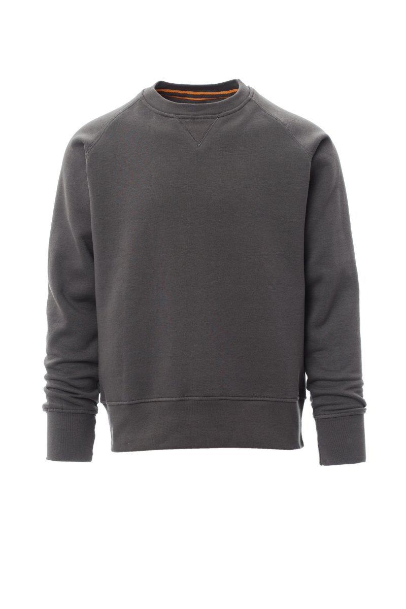 Felpa da uomo in french terry, girocollo, manica raglan, cucitura estetica a V al collo. Polsini e vita in costina elasticizzata, cuciture rinforzate.