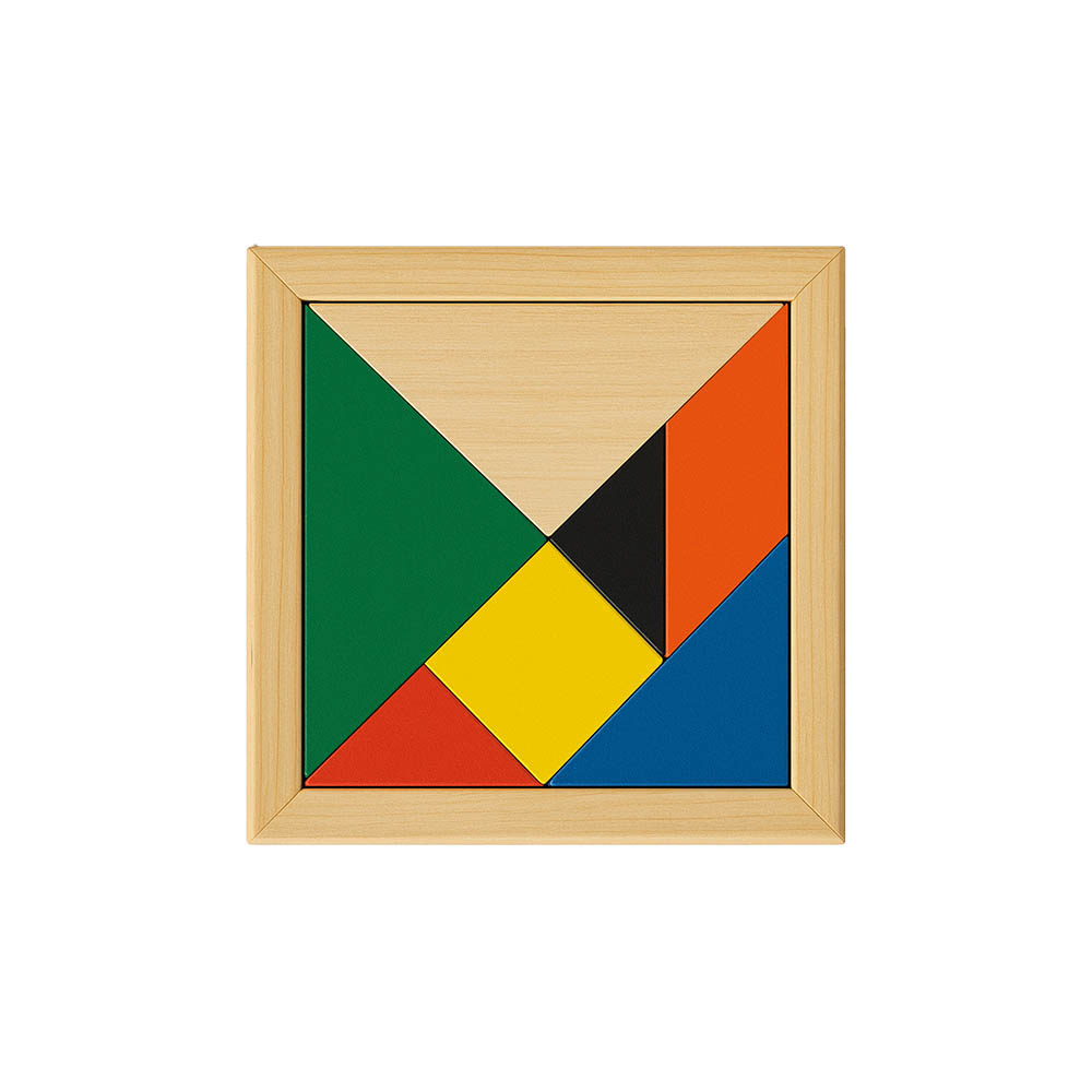 Gioco tangram in legno colorato, 7 pezzi, con bustina in cotone
