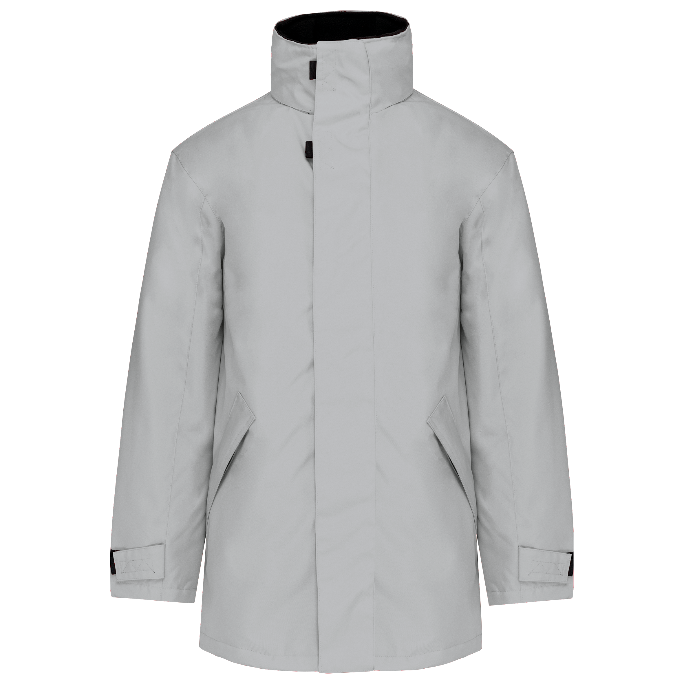 Giaccone Parka. 2 tasche esterne con zip. 2 tasche interne di cui una porta-cellulare. Cappuccio a scomparsa. Interno collo in Pile. Zip interna per facilitare la personalizzazione.