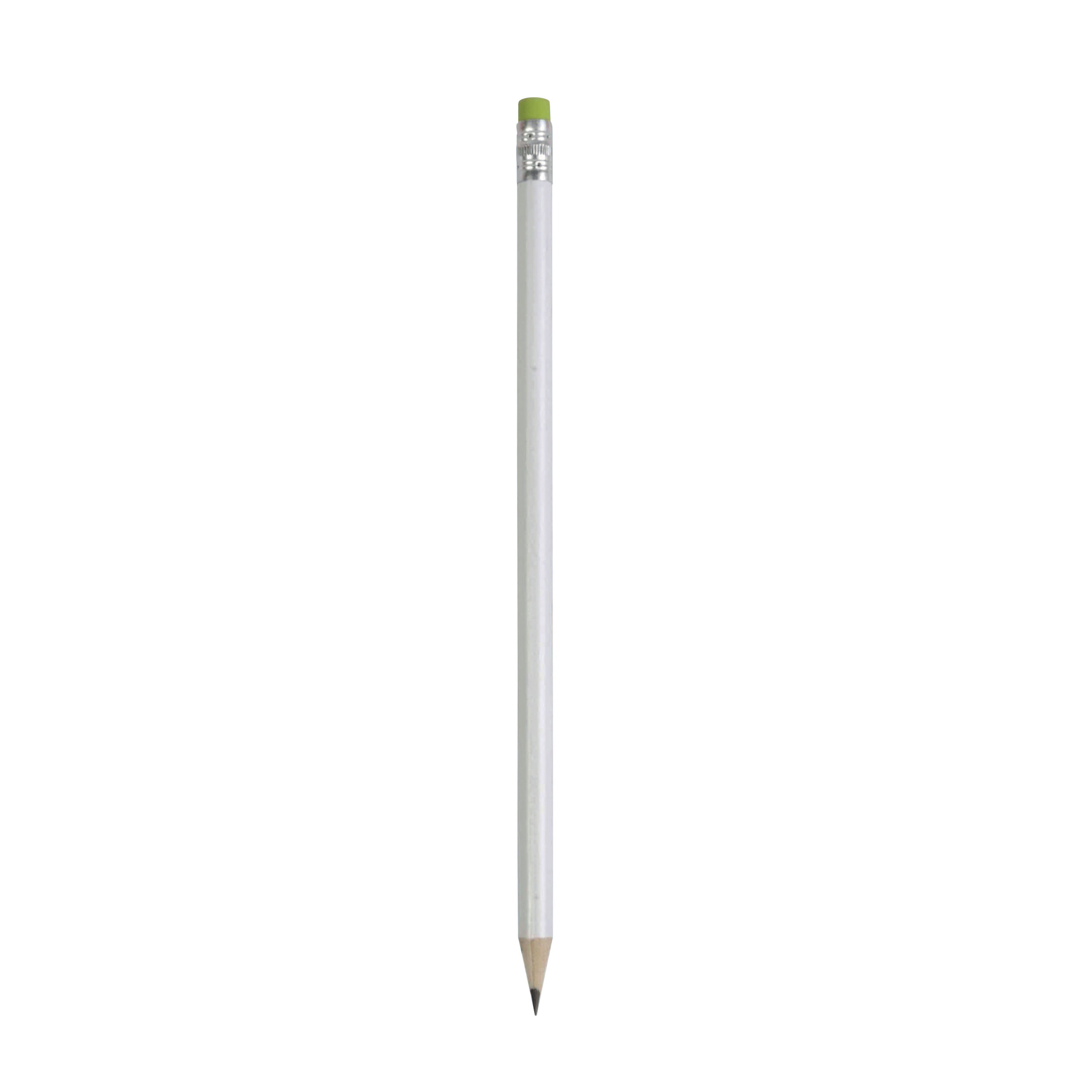 Matita bianca in legno con mina in grafite, a sezione cilindrica, con gommino colorato