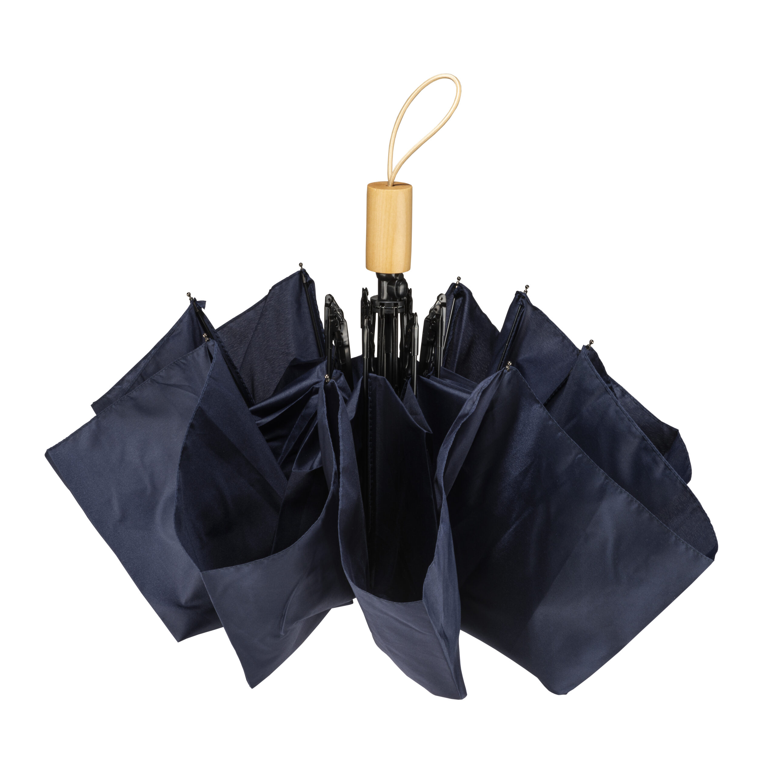 Ombrello manuale in Rpet con manico in legno, struttura in metallo e astuccio in tinta.