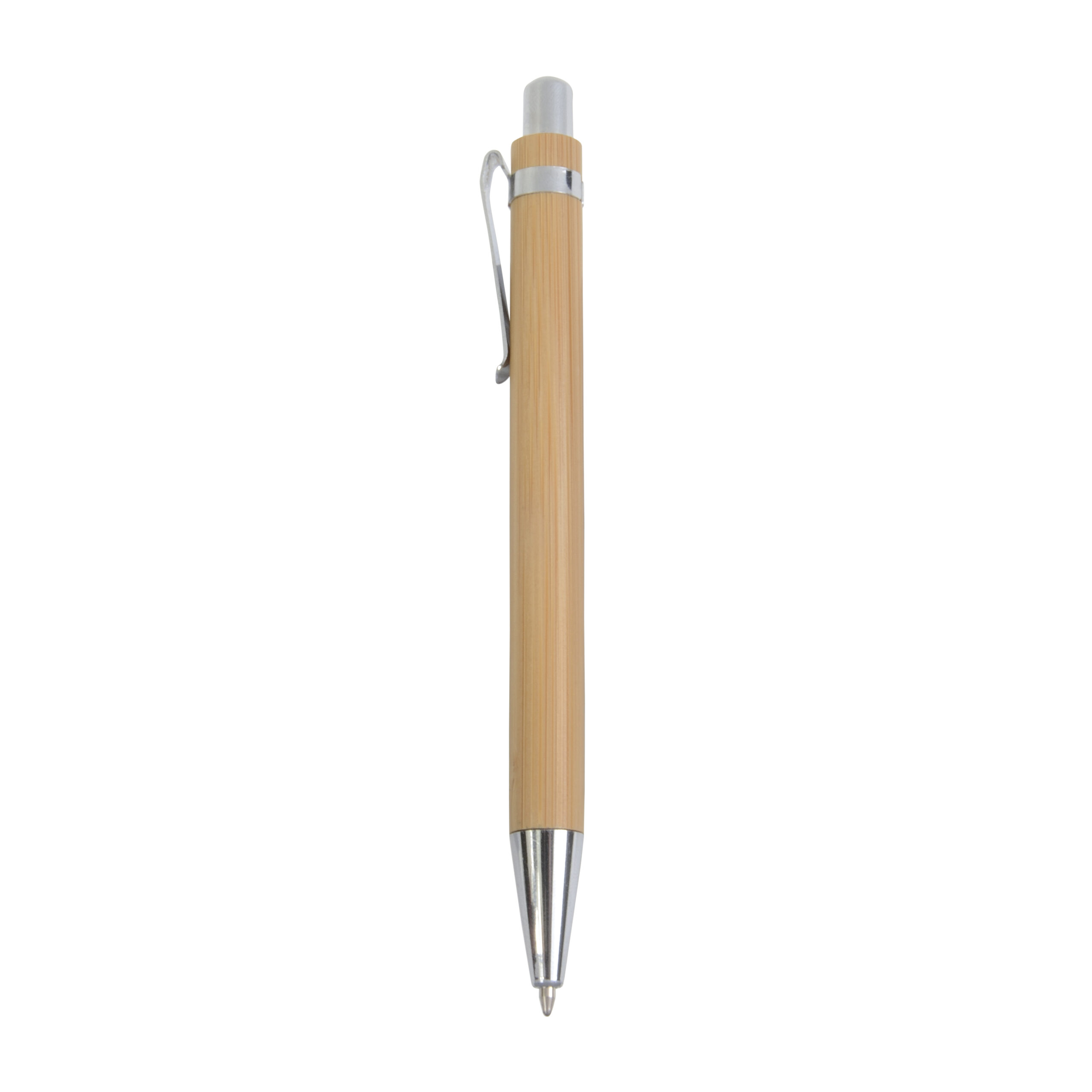 Penna a scatto in bambù con particolari cromati