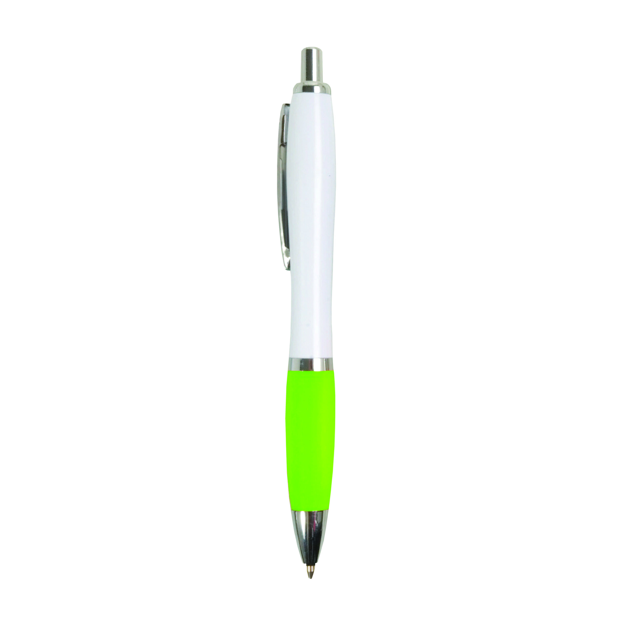 Penna a scatto in plastica ABS, con fusto bianco, impugnatura colorata gommata