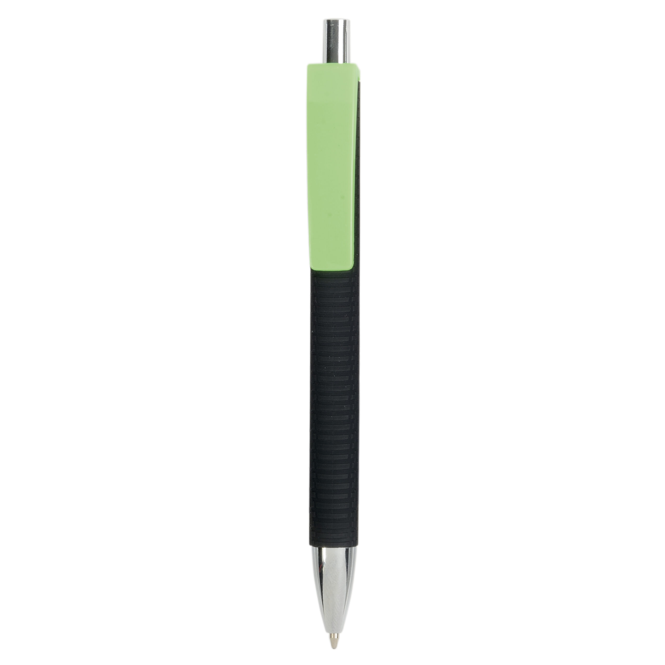 Penna a scatto in plastica con fusto gommato effetto pneumatico nero, con clip larga colorata