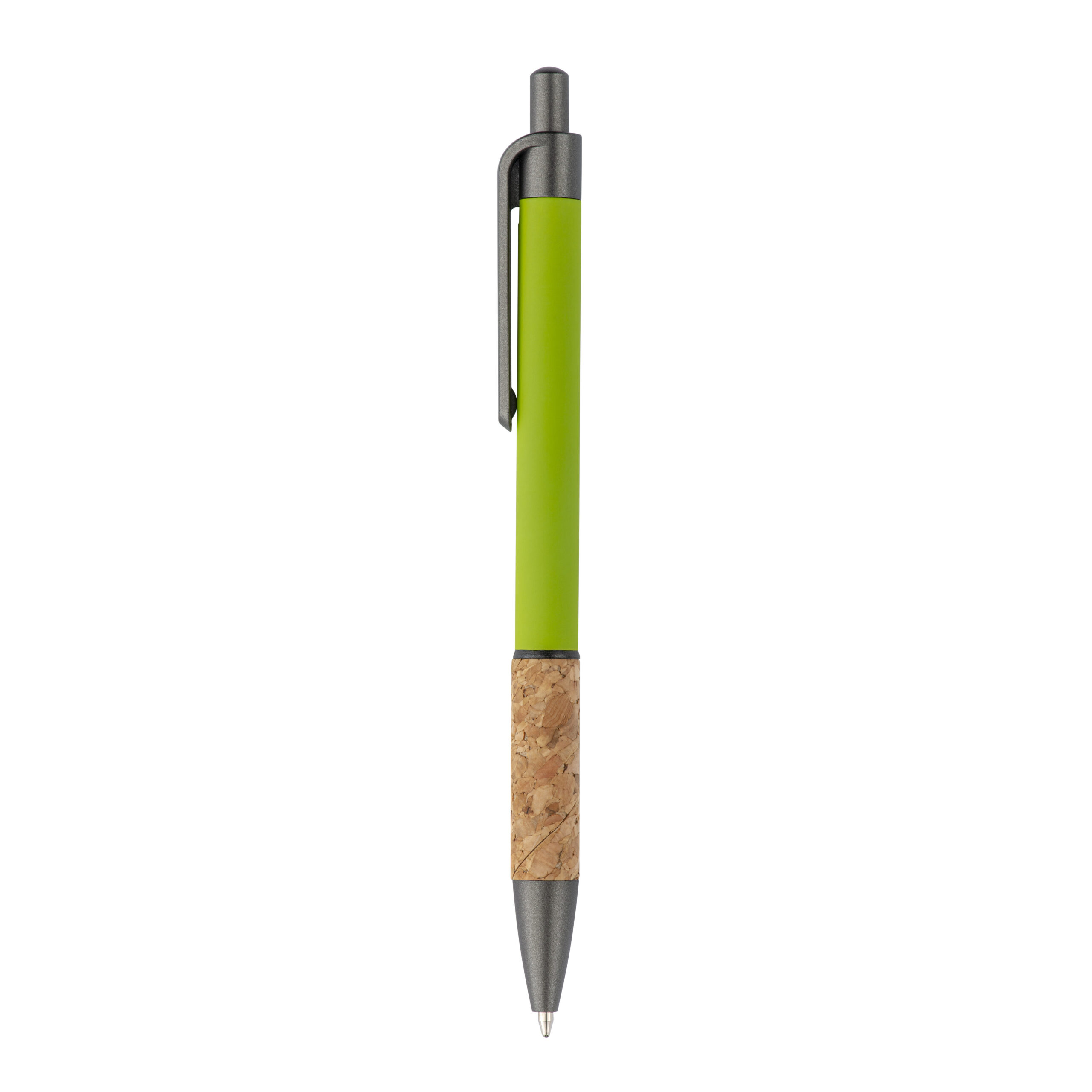 Penna in alluminio con impugnatura in sughero, clip, top e punta bruniti