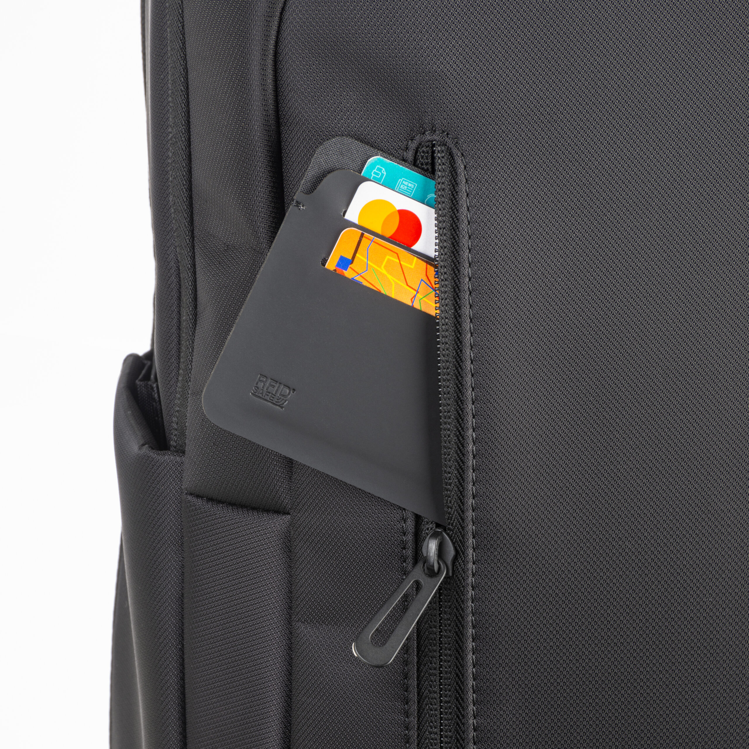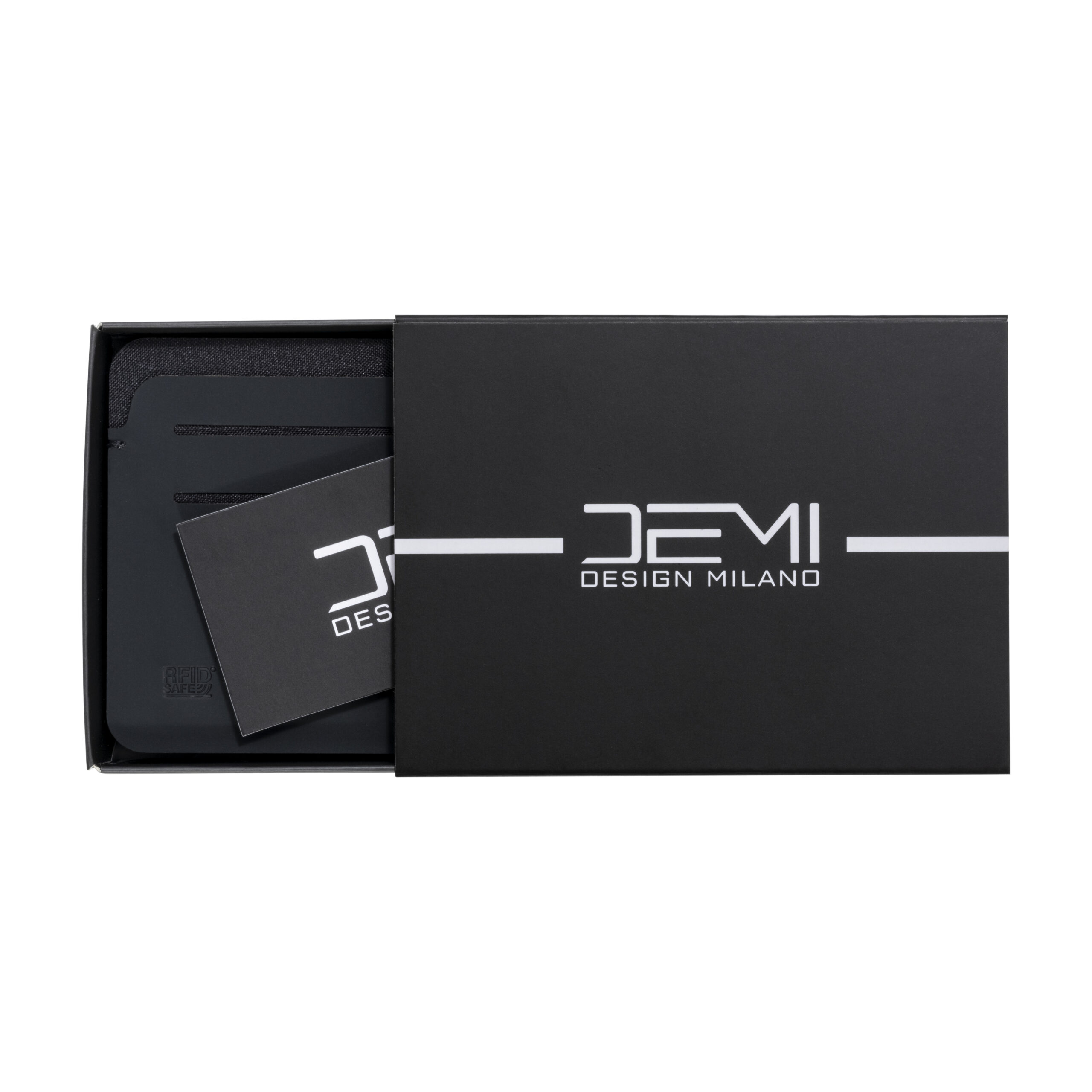 Porta carte anti RFID in soft PU. Con sei compartimenti per carte e logo RFID. Consegnato in scatola con logo DEMI