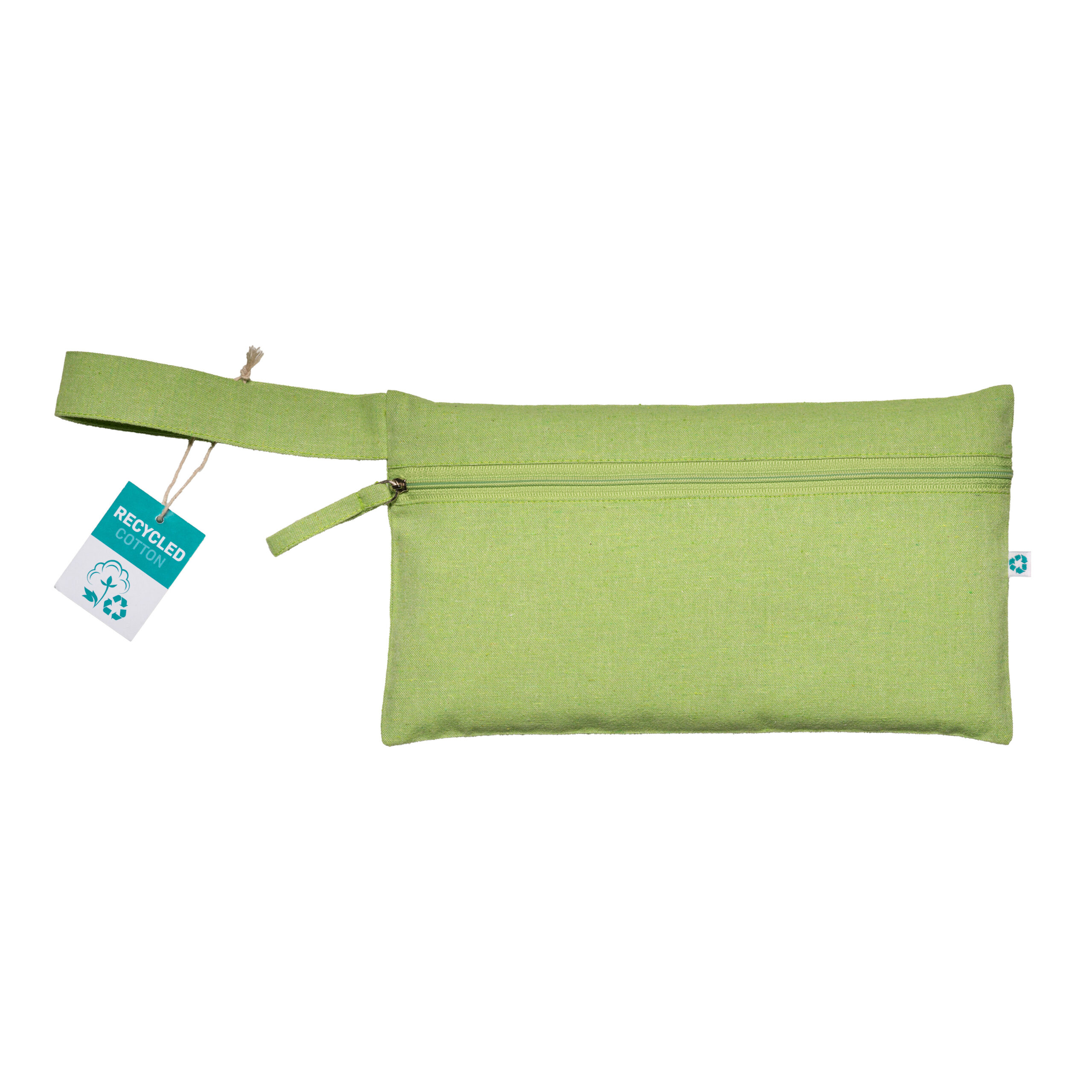 Porta documenti in cotone riciclato 180 g/m2. Dotato di pratica maniglia e chiusura con zip. È certificato GRS (Global Recycled Standard)