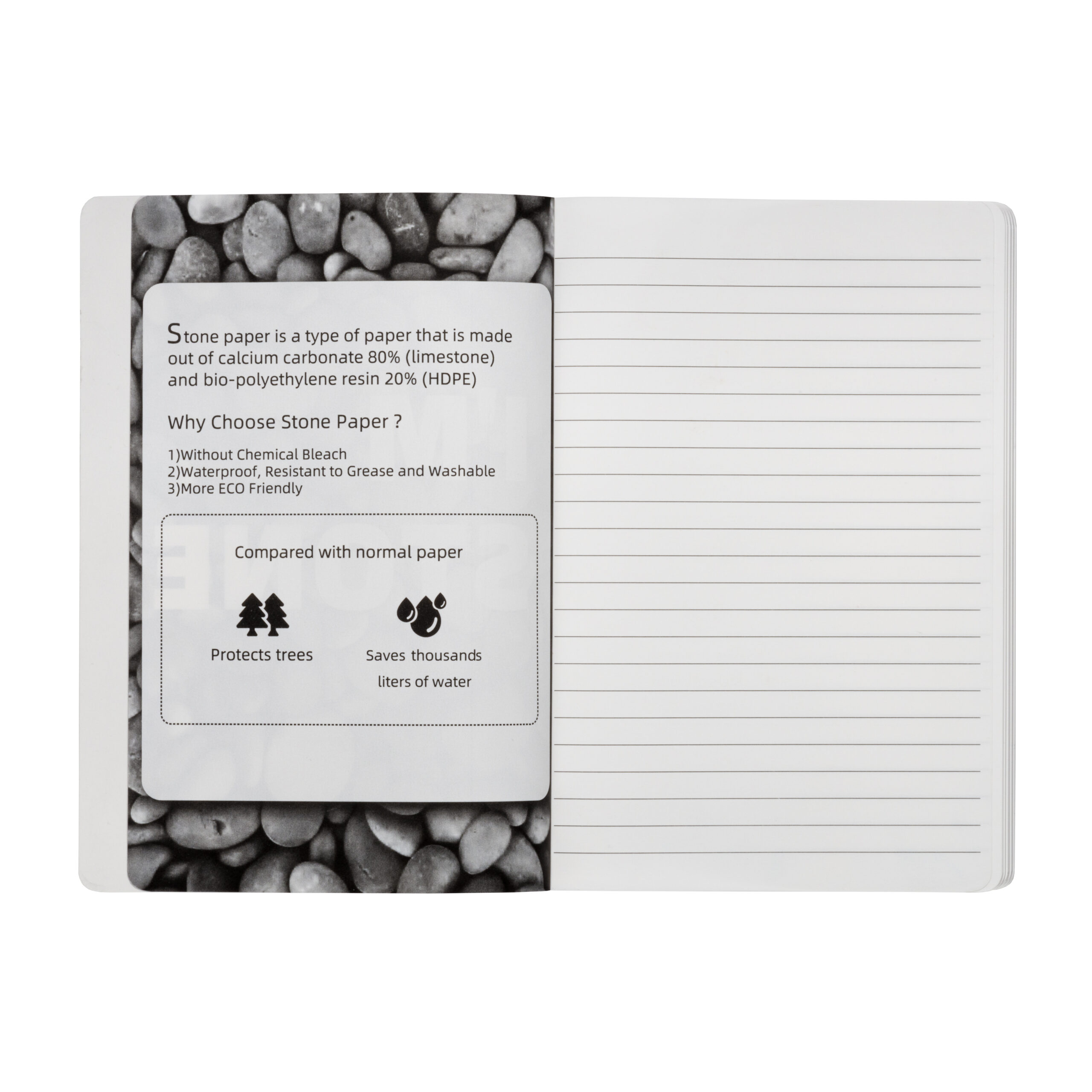 Quaderno in carta di pietra, fogli bianchi a righe, 64 pag., 14,5×21 cm