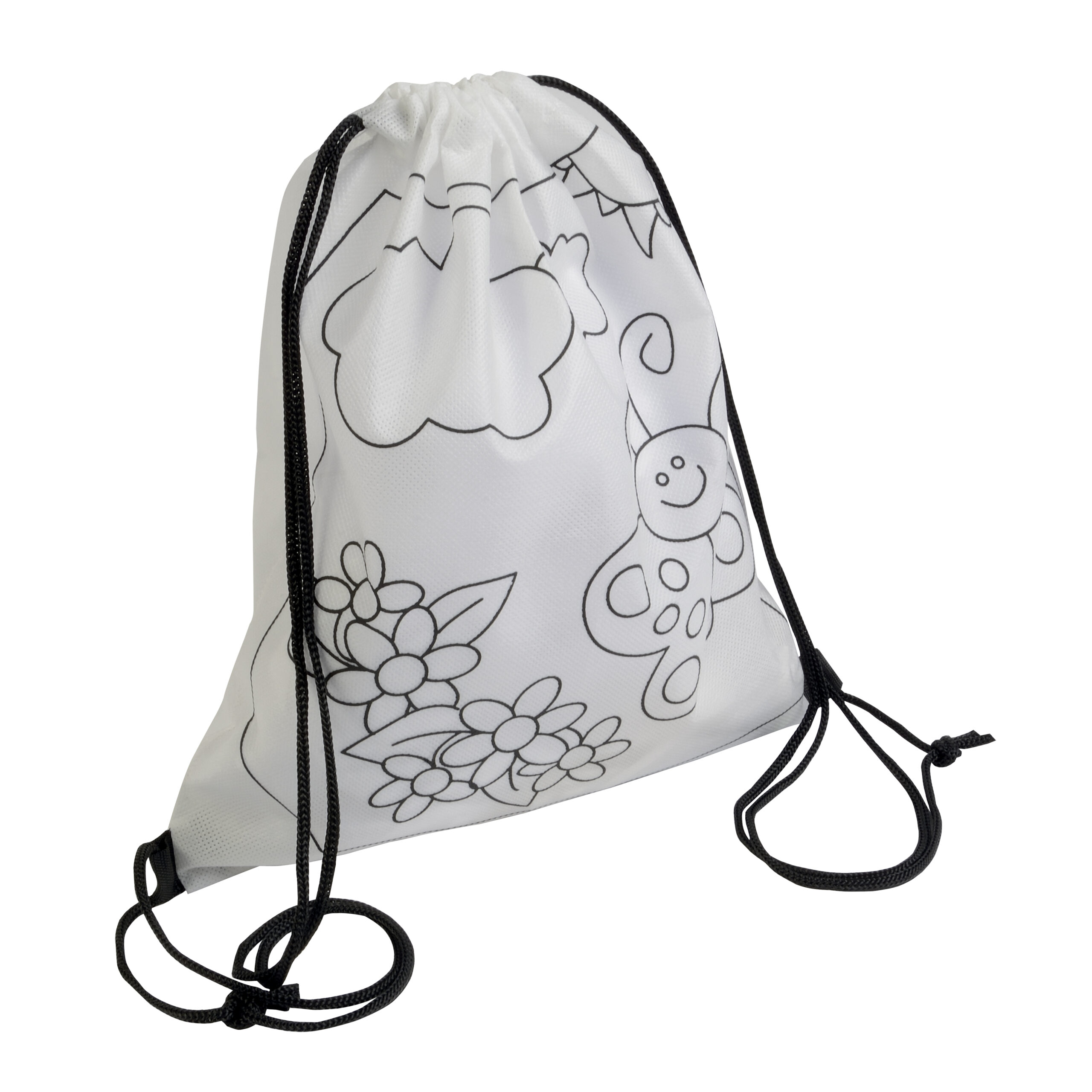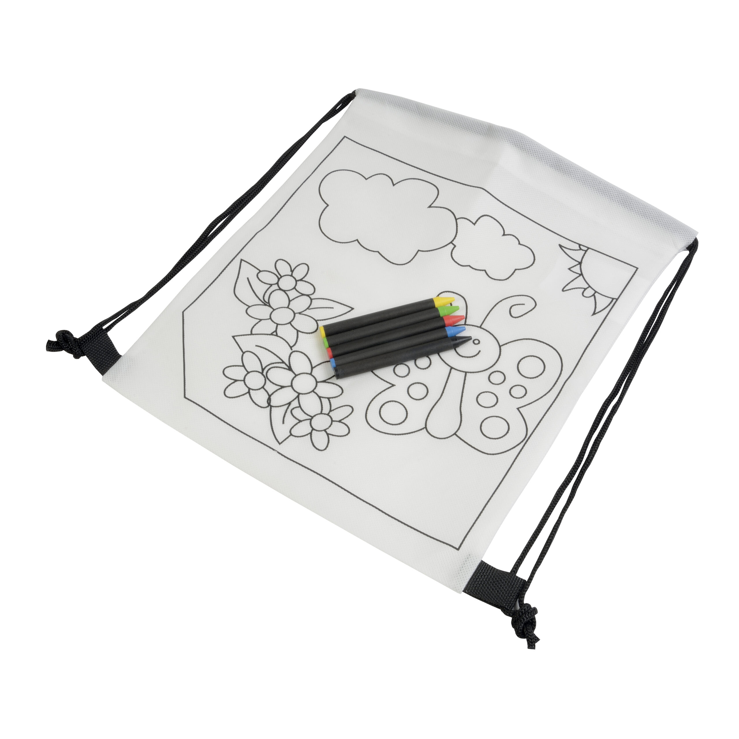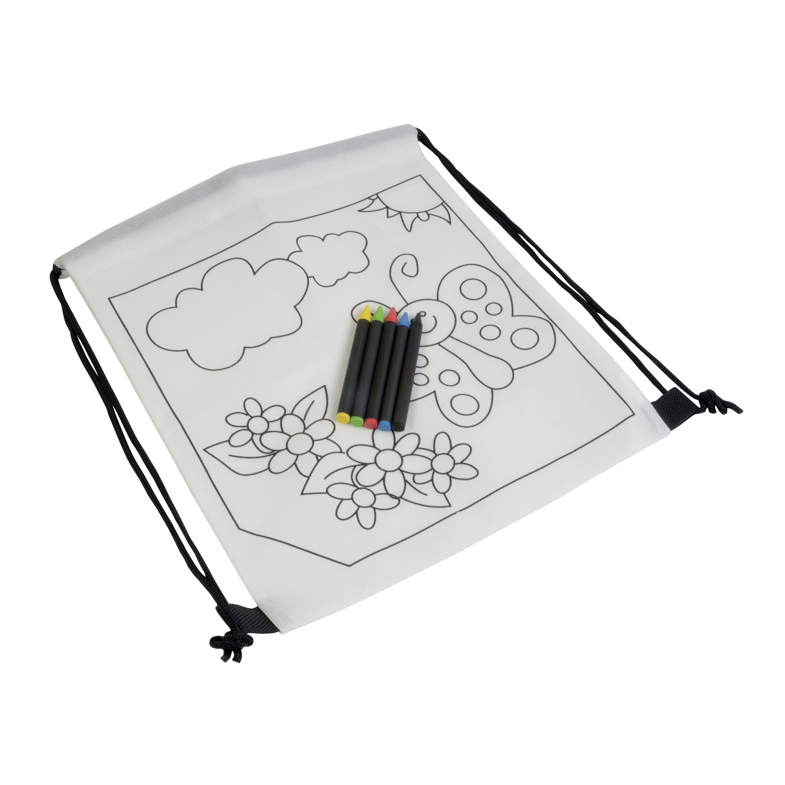 Set di 5 pastelli a cera colorati a sezione cilindrica, in mini zaino colorabile in TNT