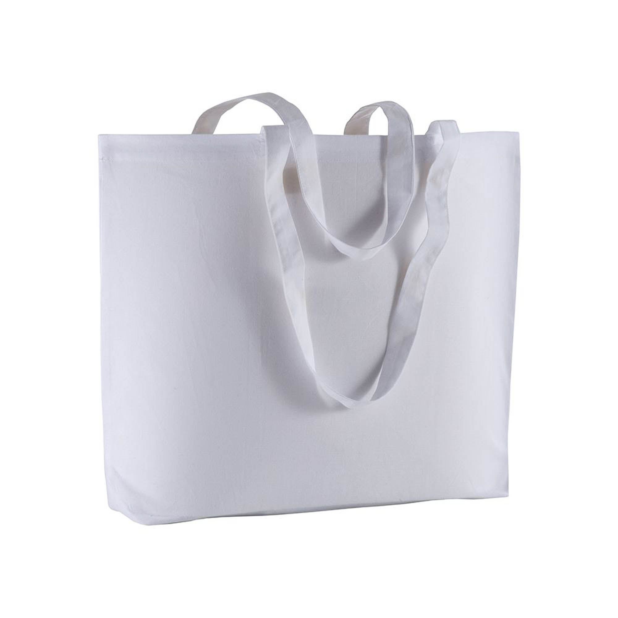 Shopper con soffietto alla base in cotone 135 g/m2, manici lunghi – Misure soffietto 35×15 cm – Il colore bianco potrebbe subire un leggero calo di peso rispetto al valore indicato, dovuto al candeggio cui viene sottoposto