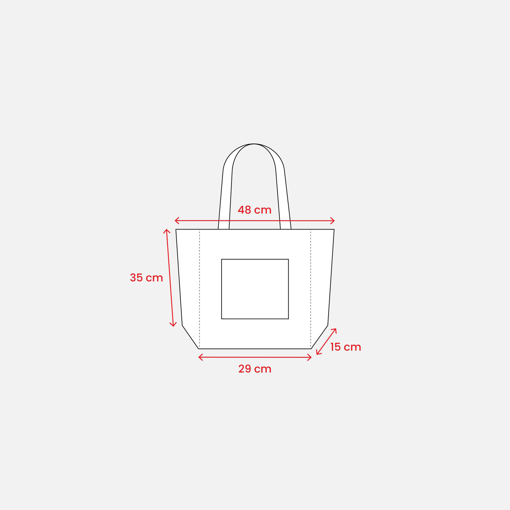Shopper con soffietto alla base in juta con manici e tasca esterna (18 x 15 cm) in cotone