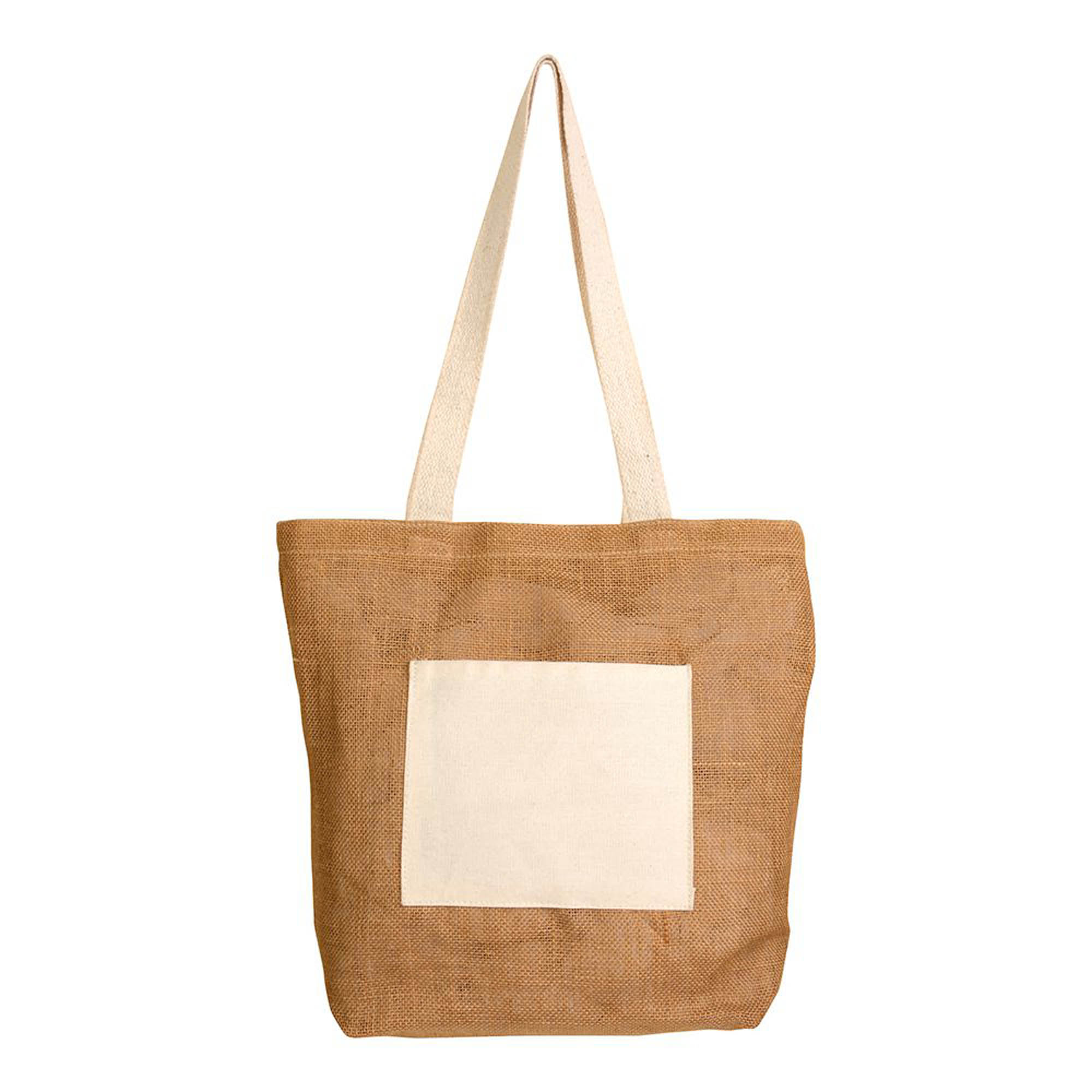 Shopper con soffietto alla base in Juta con manici e tasca esterna (18 x 15 cm) in cotone