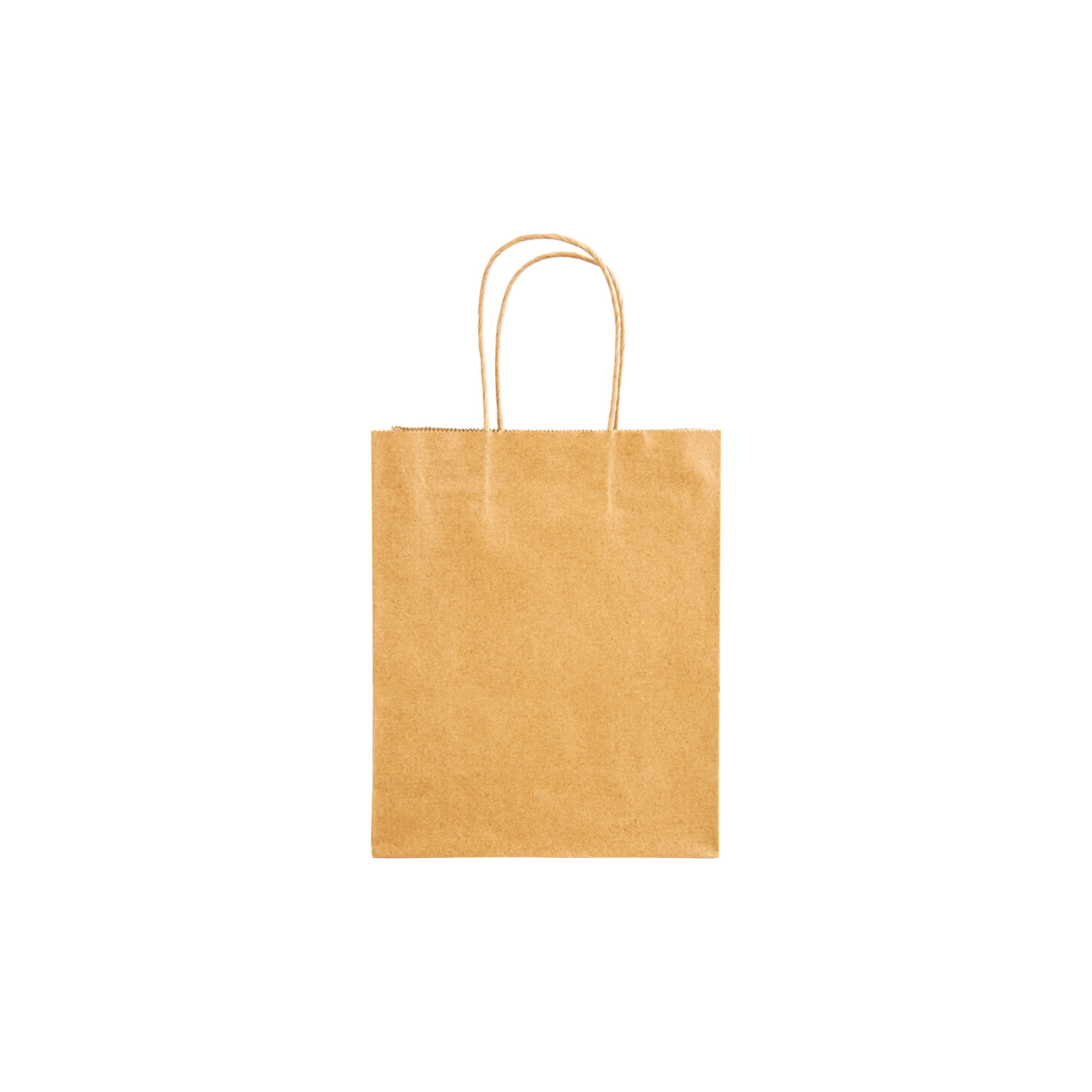 Shopper in carta 100% riciclata 100 gr/m2, con soffietto e manici ritorti