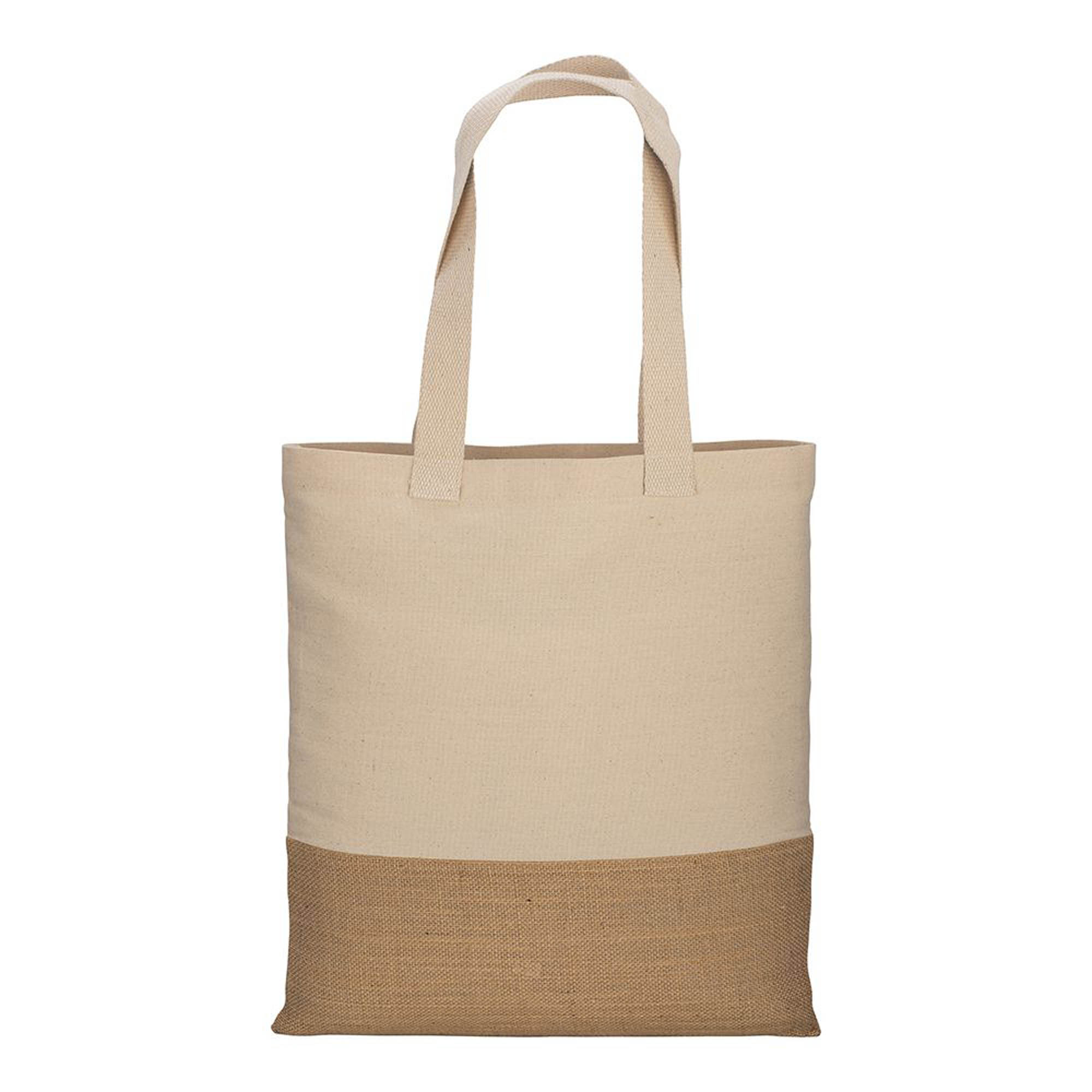 Shopper in cotone 230 g/m2, base in juta, manici lunghi