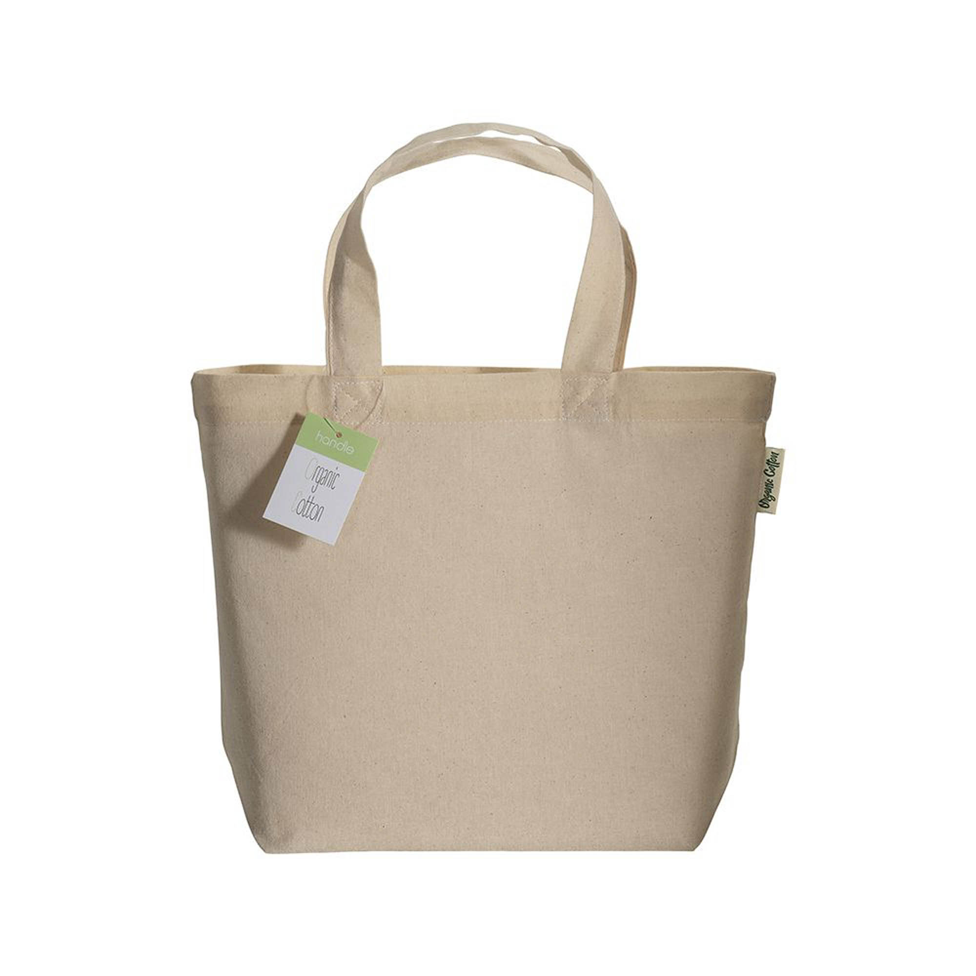 Shopper in cotone biologico con manici corti e soffietto alla base