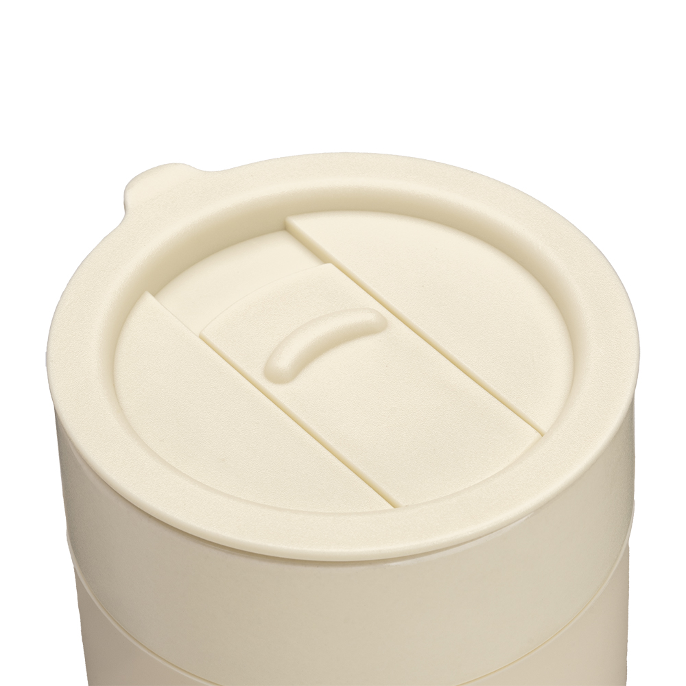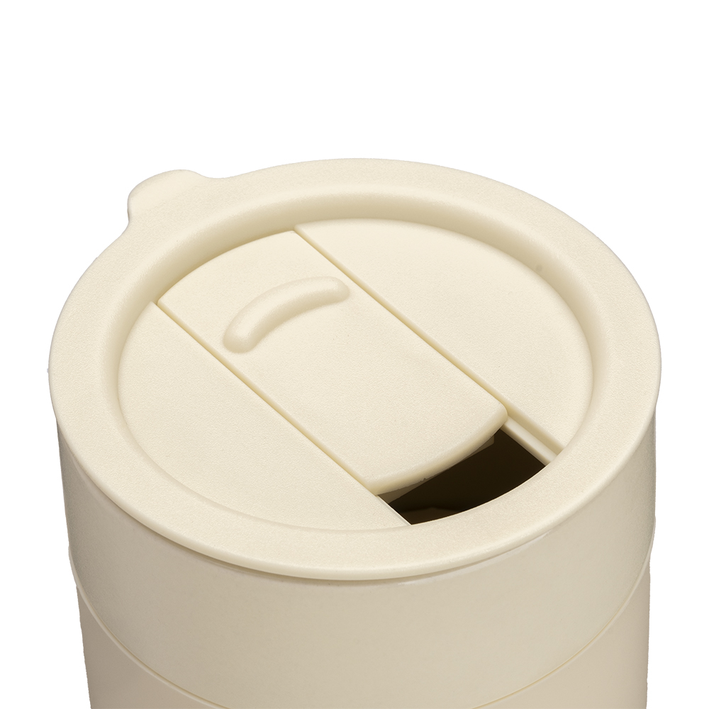 Tazza in ceramica con rivestimento in silicone da 300 ml. Tappo in PP rimovibile con apertura a scorrimento