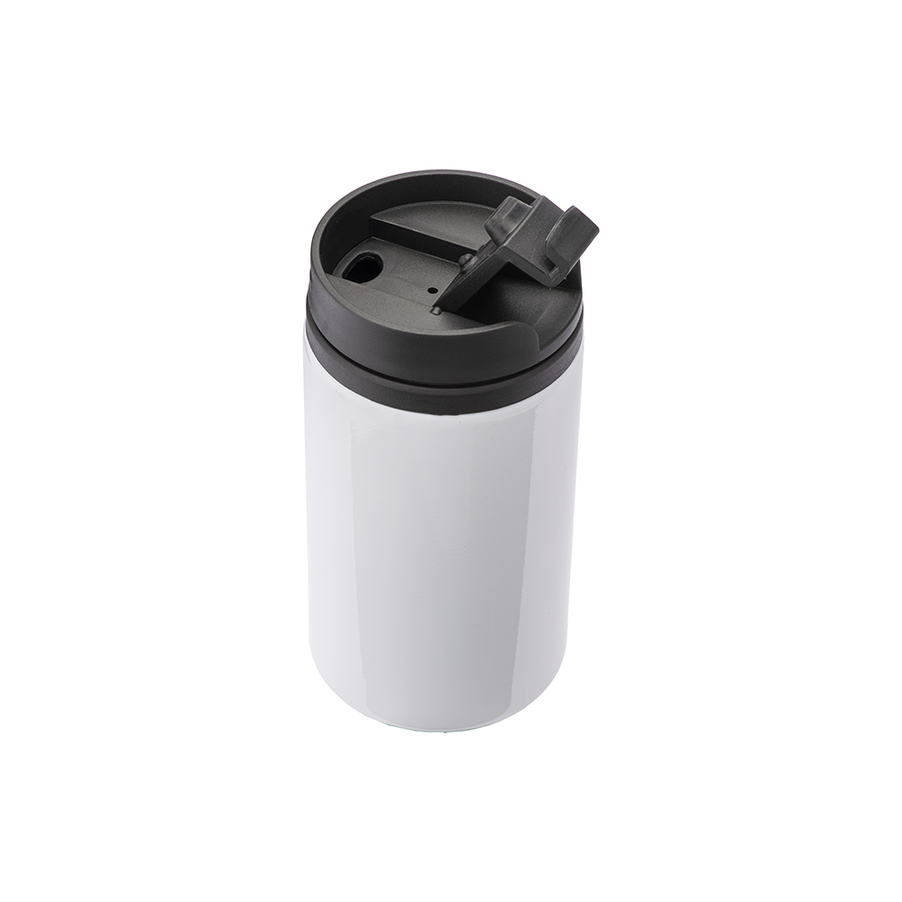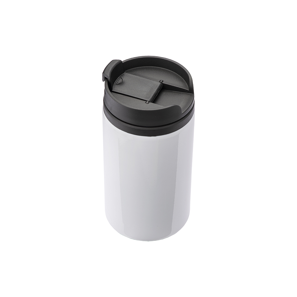Tazza in metallo con interno, manico e tappo in plastica. Adatta per la stampa sublimatica