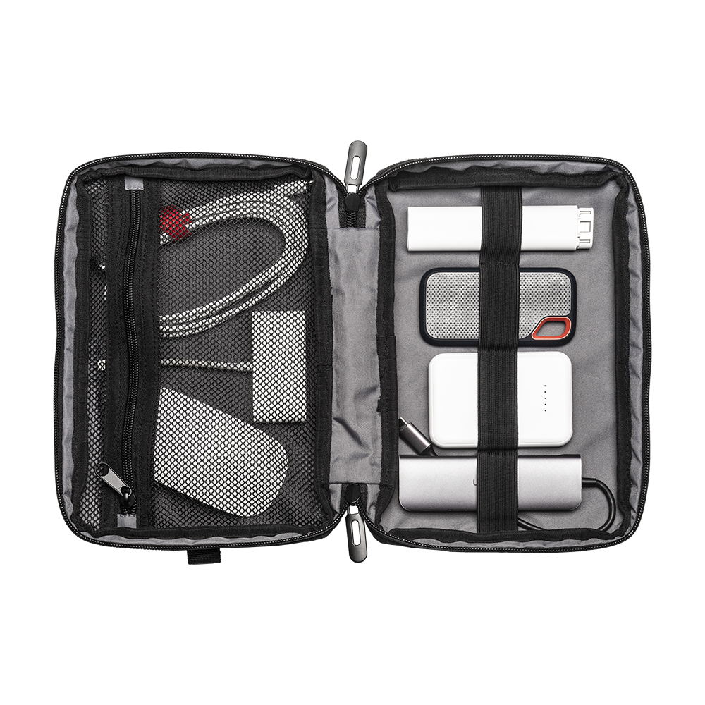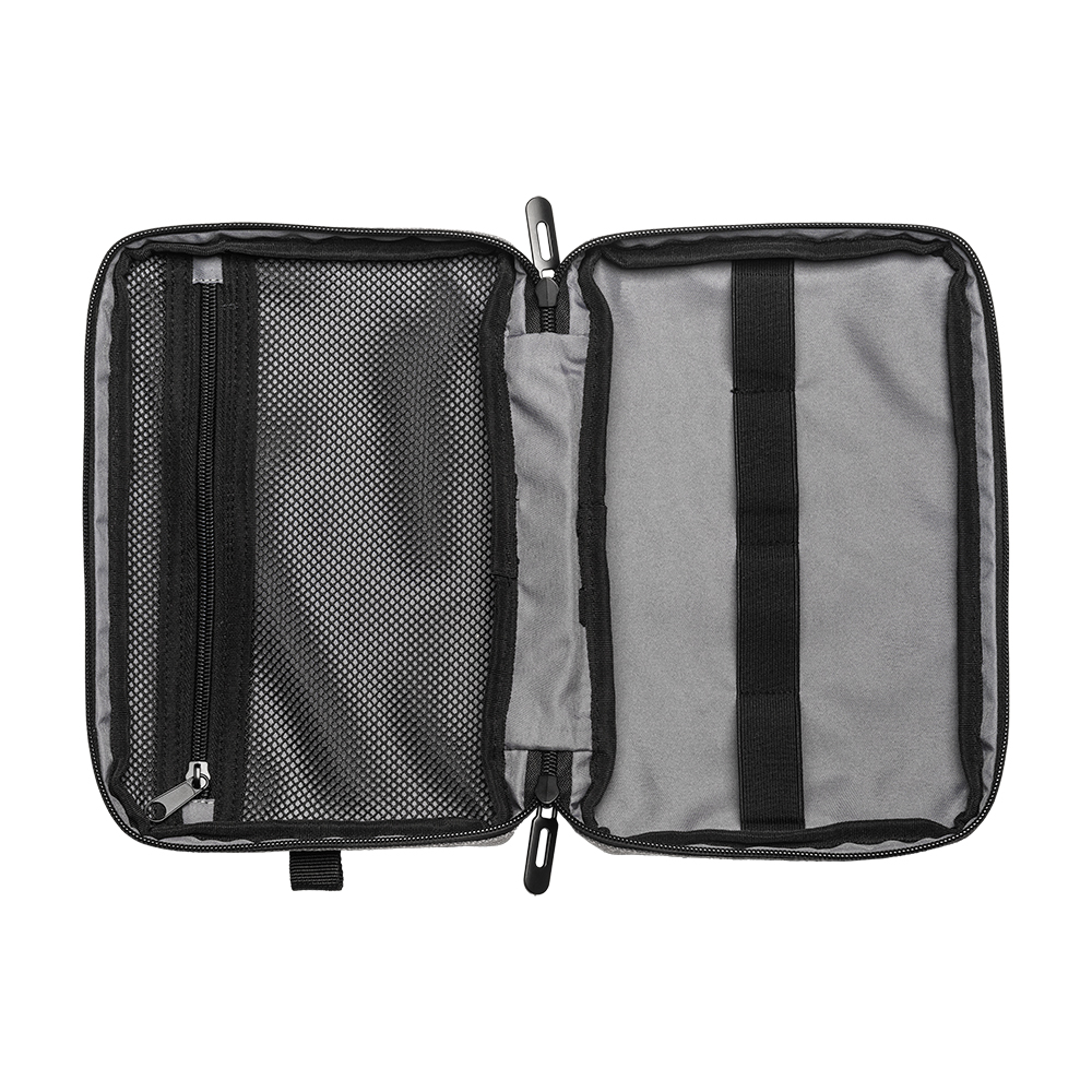 Tech organizer in poliestere riciclato jacquard 600D (lining interno in R-PET). Dotato di zip waterproof e tasca interna con zip