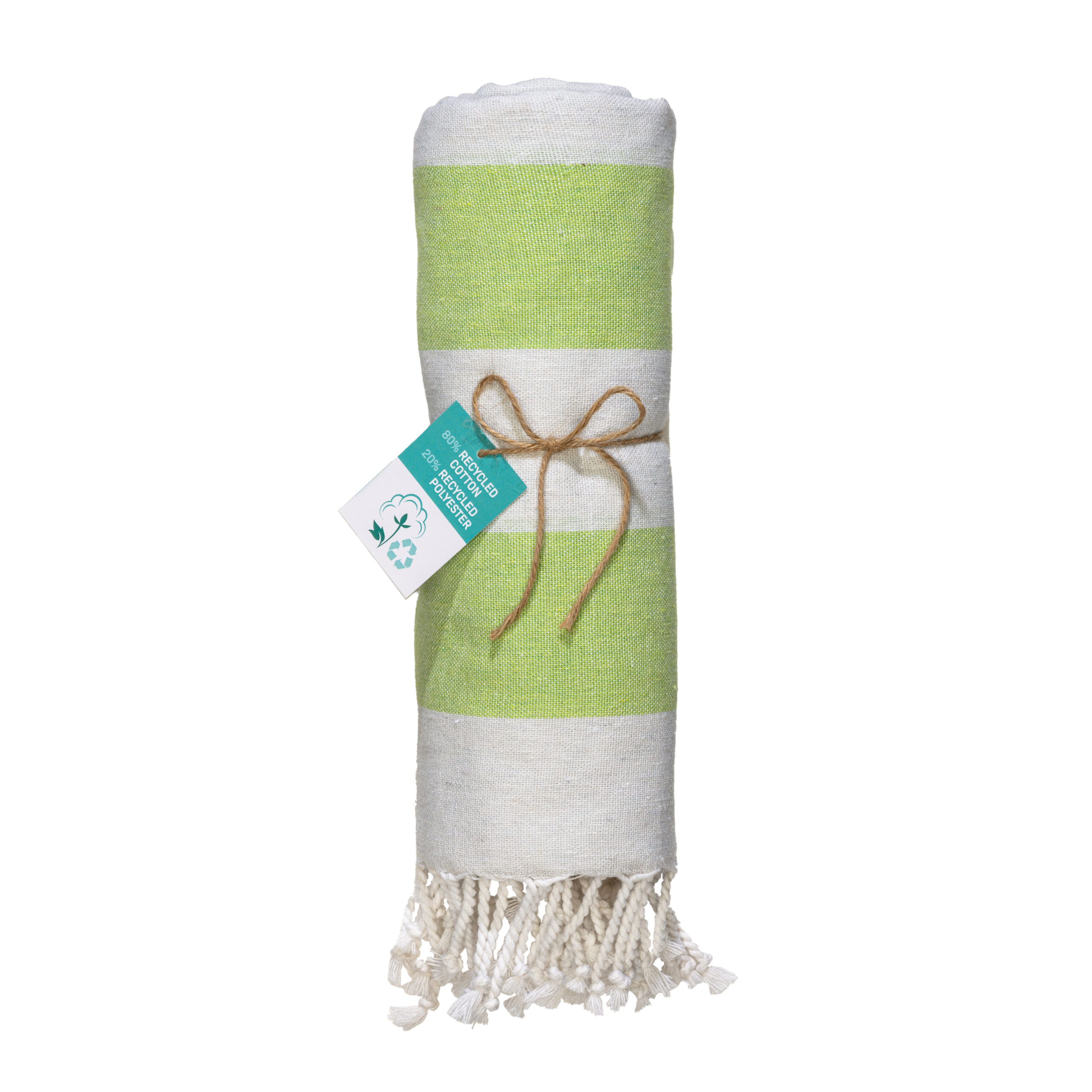 Telo mare/pareo in cotone riciclato da 180 gr/m2 con frange, misura 90×170 cm