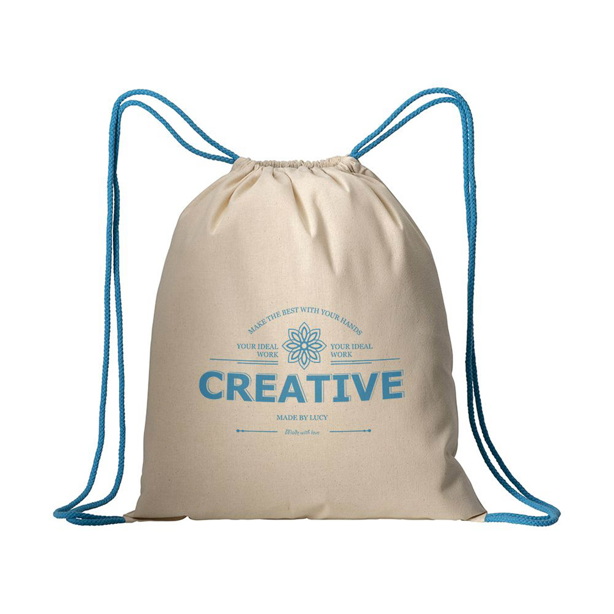 Zainetto in cotone naturale con chiusura a strozzo e cordini colorati