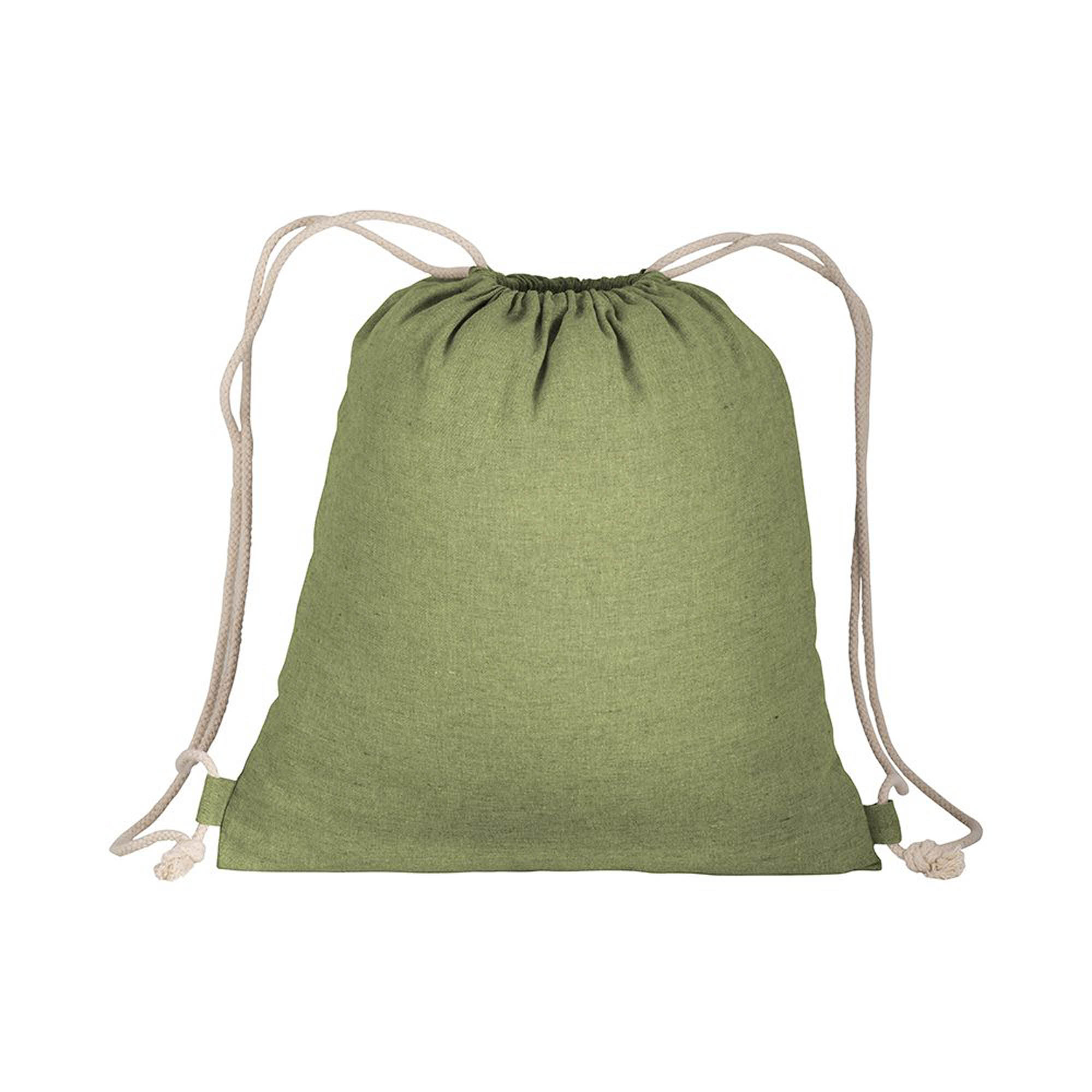 Zainetto in cotone riciclato effetto melange con chiusura a strozzo CON CORDINI FISSATI CON ASOLA