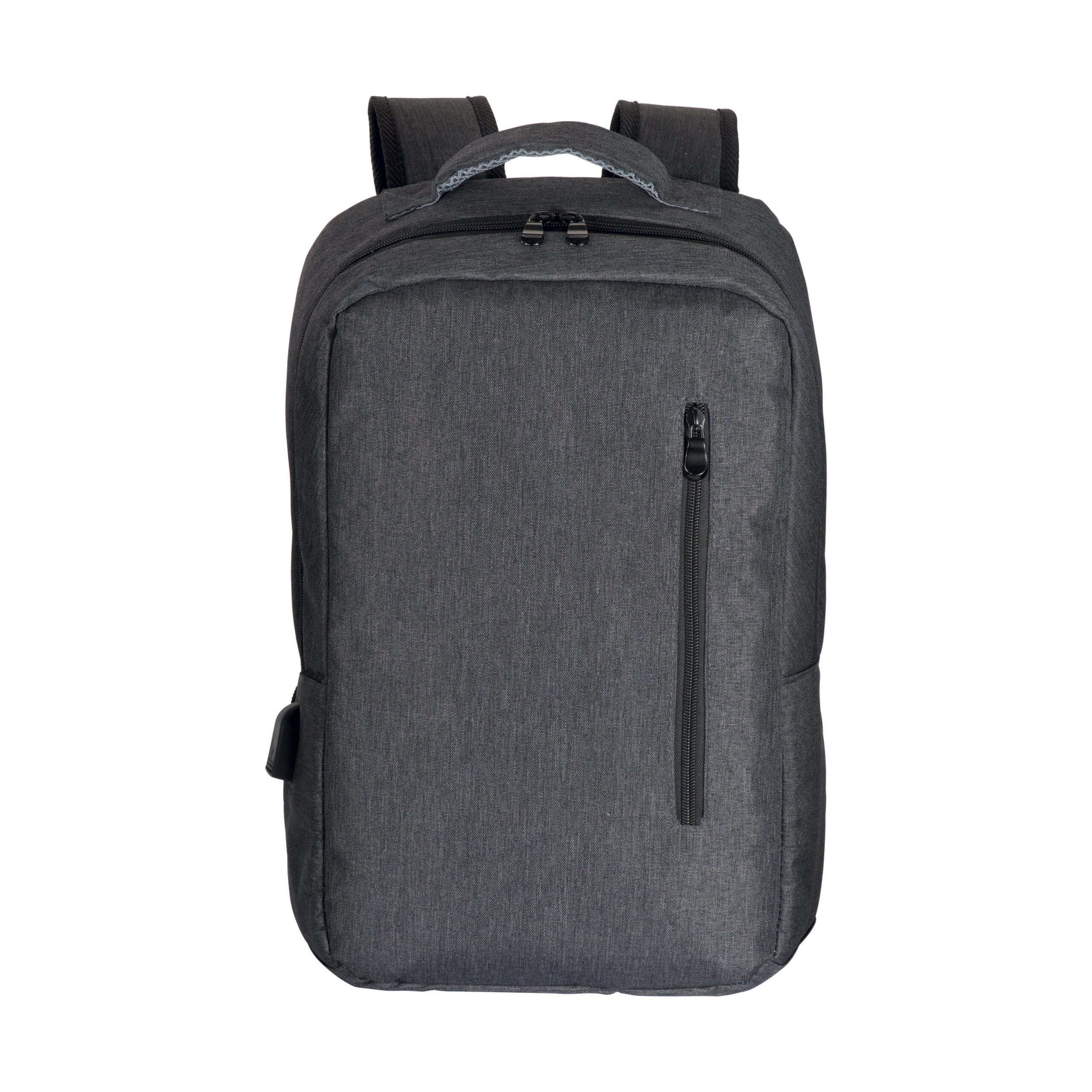Zaino porta computer poliestere two tone con tre tasche. Tasca principale porta pc e tasca frontale. Schienale e spallacci imbottiti con materiale traspirante. Porta USB esterna