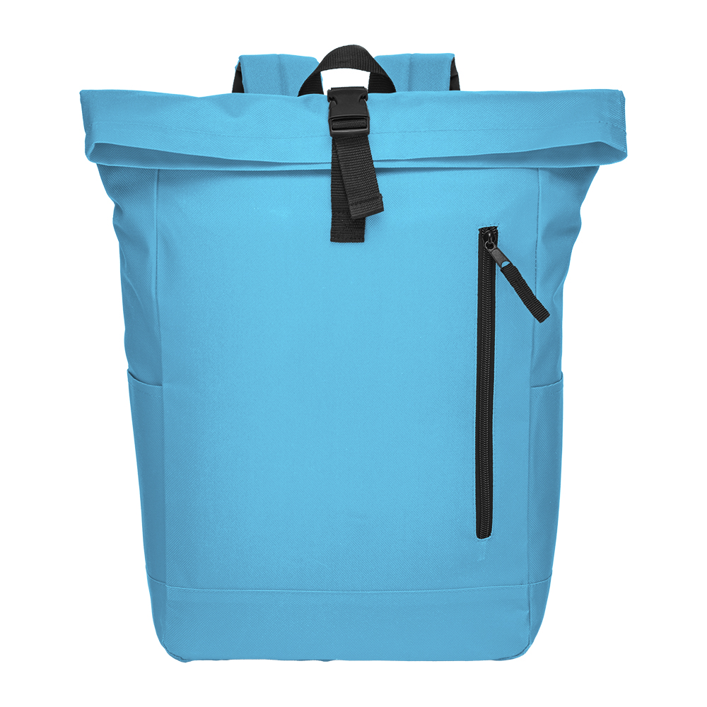 Zaino porta pc (15) in poliestere 600D. Tasca frontale con cerniera e chiusura con gancio in plastica