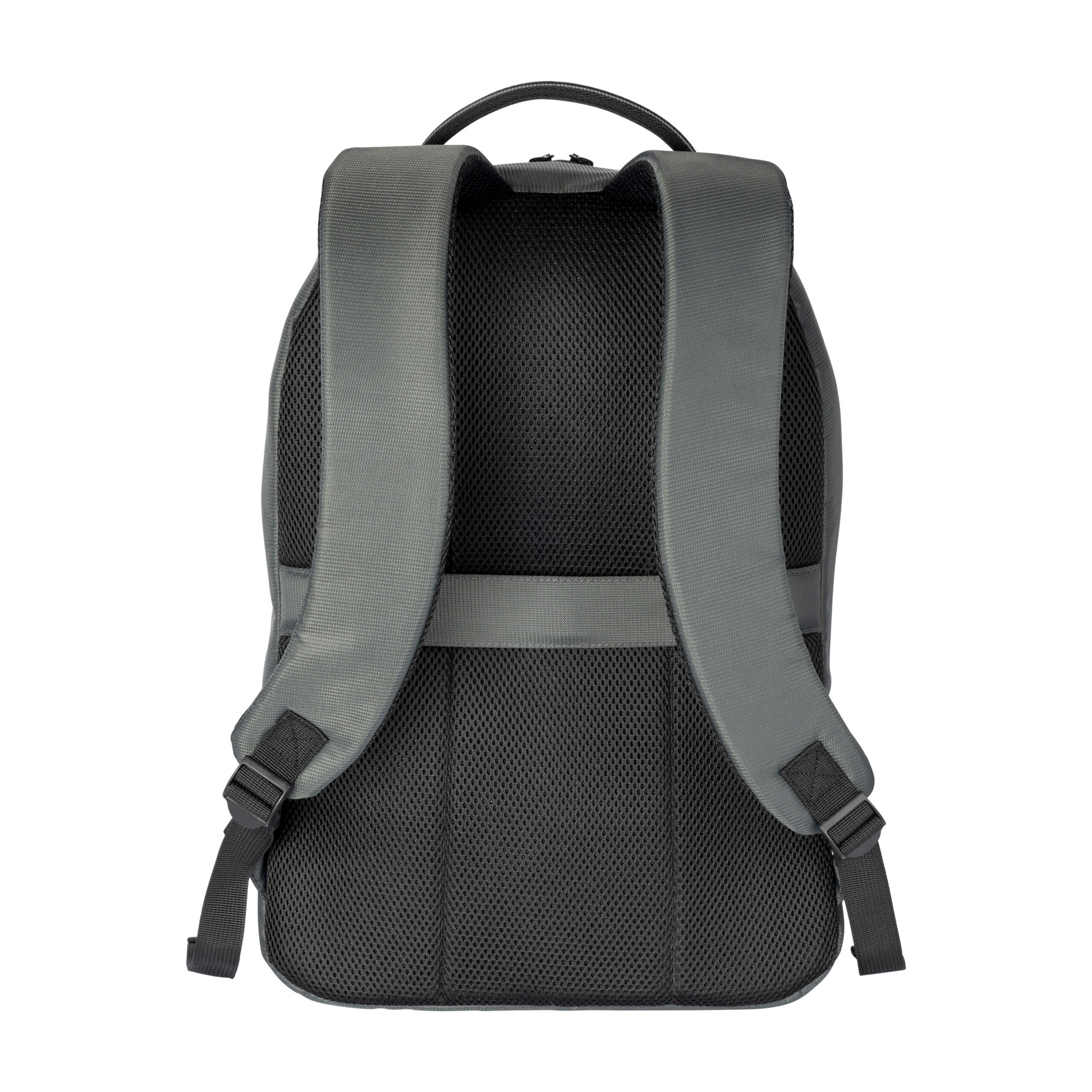 Zaino porta PC in PET riciclato.Compartimento imbottito per notebook.Schienale e spallacci imbottiti con materiale traspirante. Sistema di aggancio ai trolley