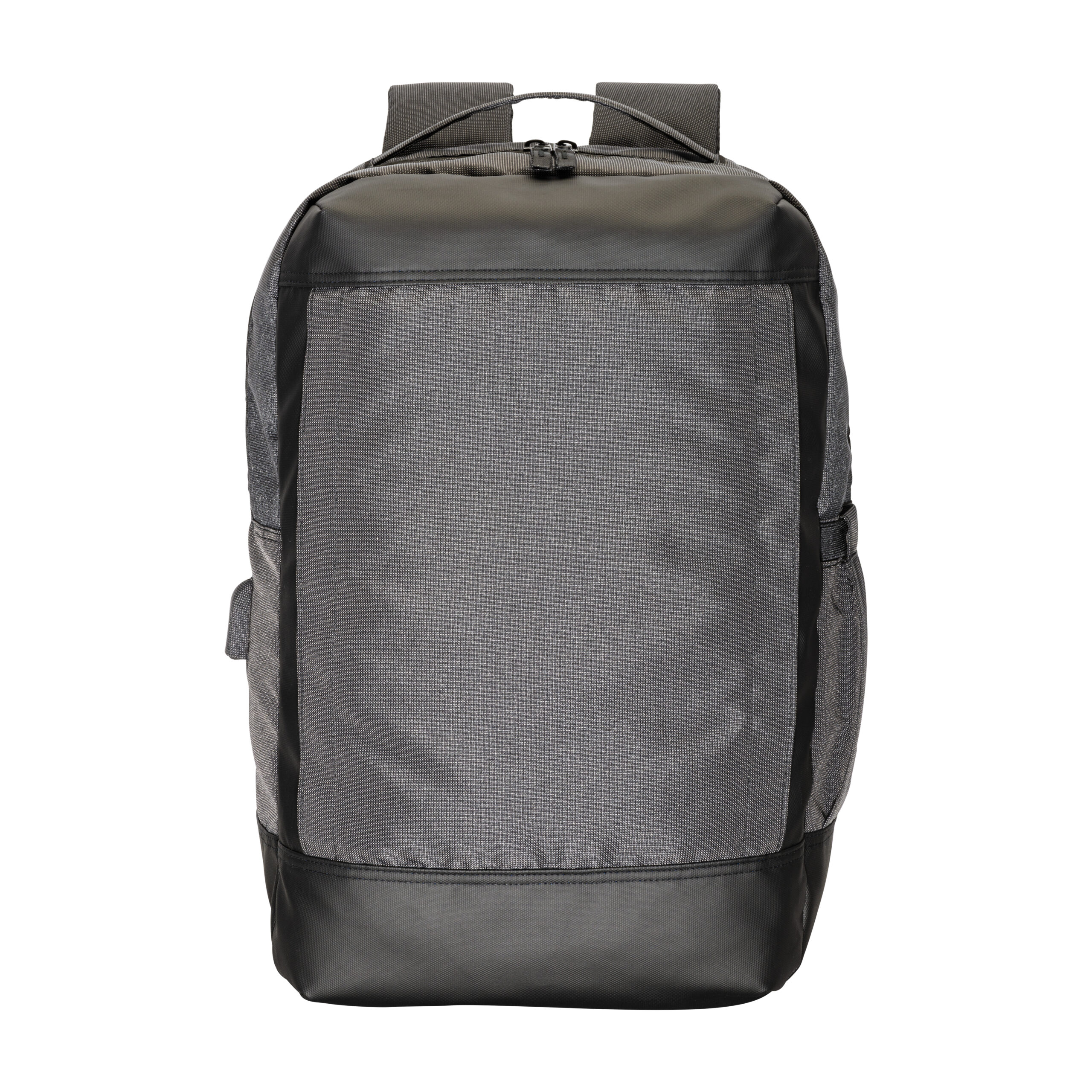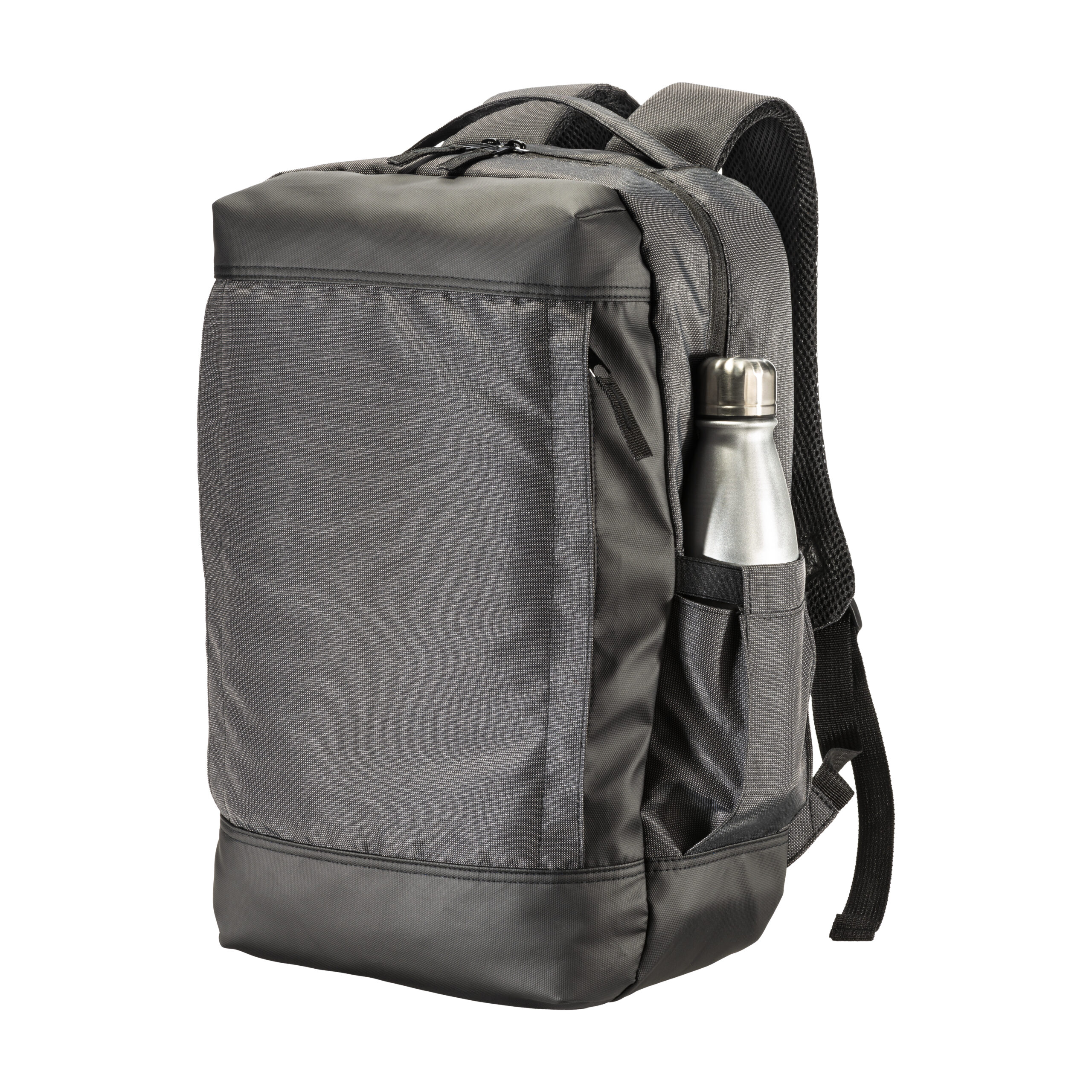 Zaino porta pc in poliestere riciclato con tintura ecologica. Compartimento interno imbottito per notebook, 1 tasca frontale con cerniera, 1 tasca laterale porta bottiglia. La tintura ecologica prevede l’aggiunta di pigmenti direttamente alla soluzione plastica fusa prima della produzione della fibra.